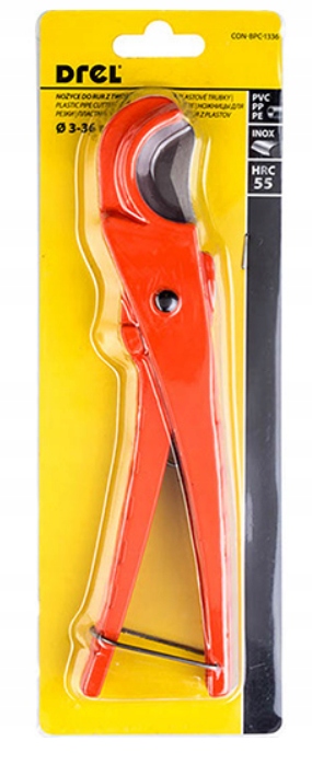 - Ножиці призначені для різання ПВХ, ПП, ПЕ та інших пластикових труб в діапазоні діаметрів труб від 3 до 36 мм.