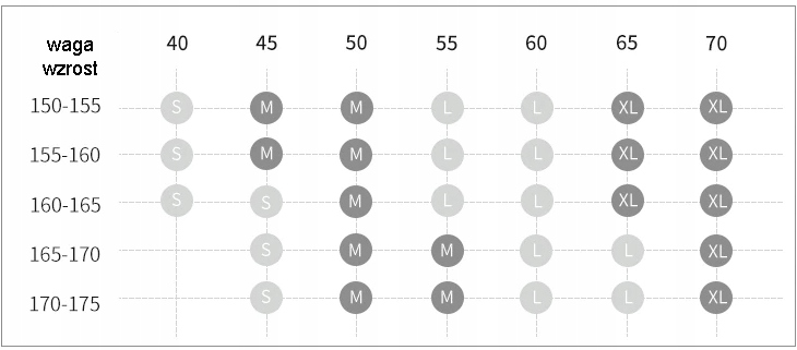 Ми рекомендуємо вибрати розмір на основі таблиці таблиці таблиці висоти та ваги: