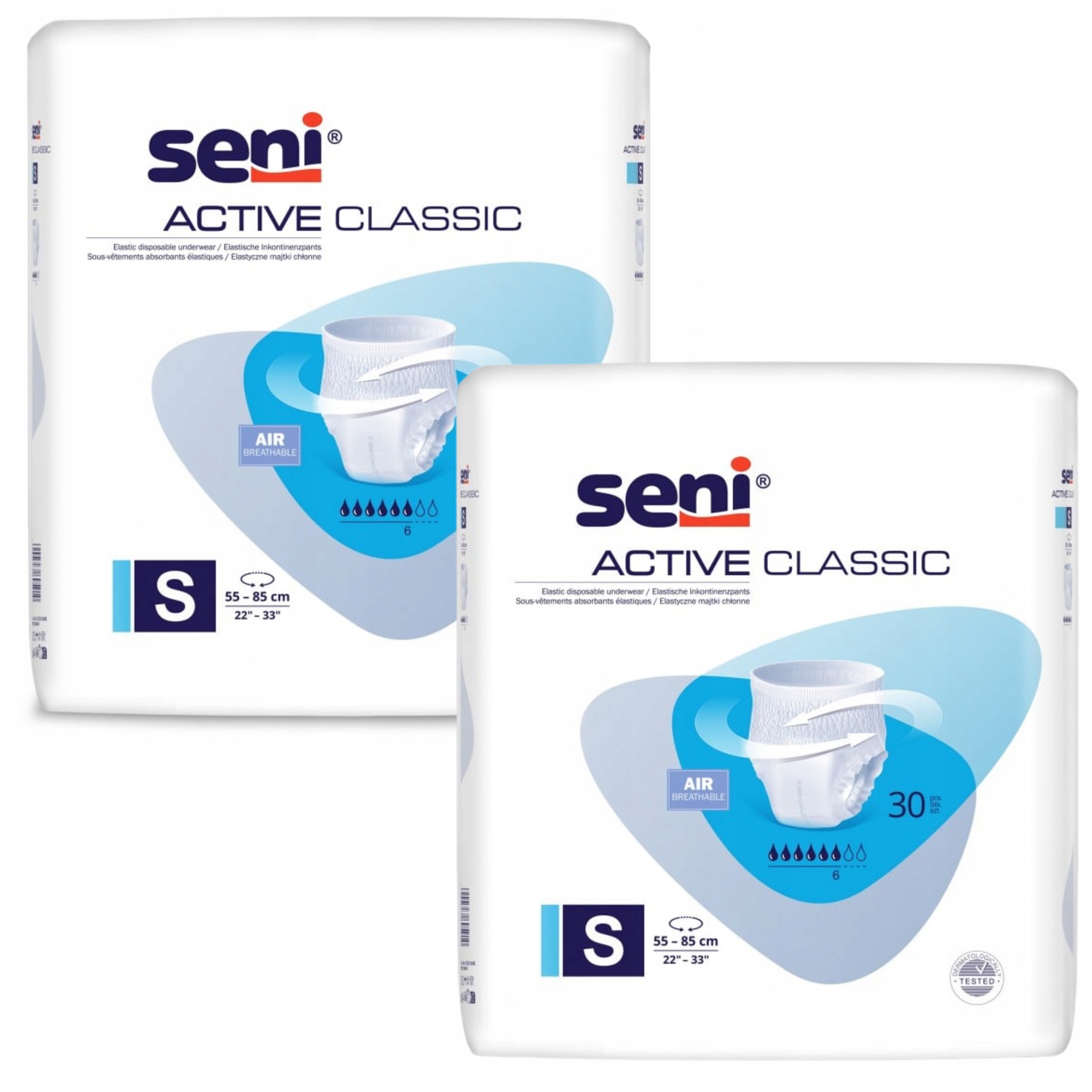 У НАБІР входить 2 упаковки вбираючих трусиків SENI ACTIVE CLASSIC S, 30 шт.