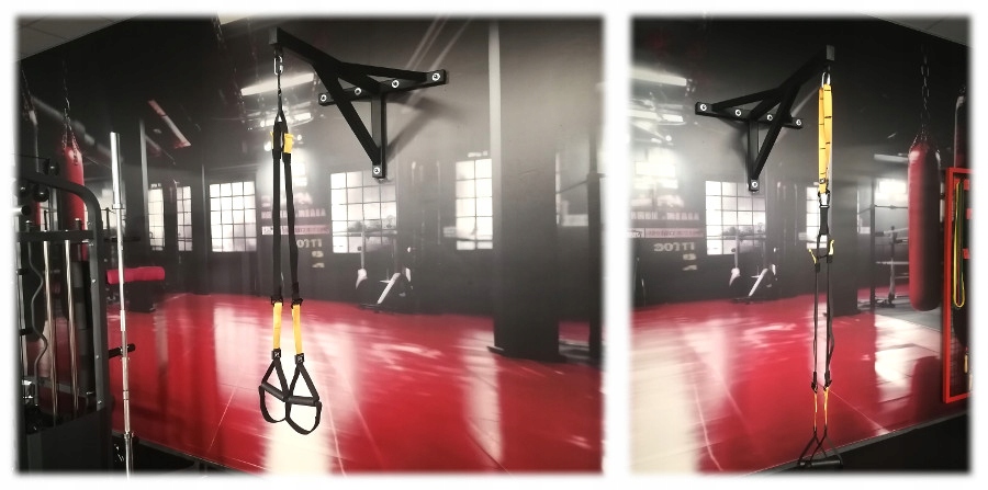 Ви можете тренуватися будь-де, де можете повісити стрічку. (дана модель має додатковий торець, що дозволяє вішати стрічки вдома, у двері)