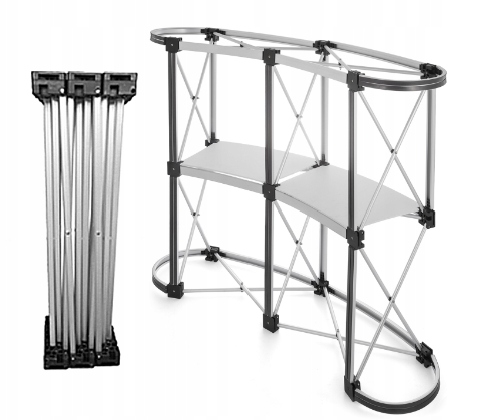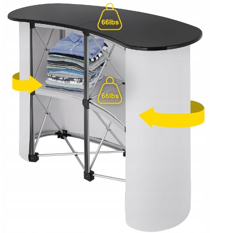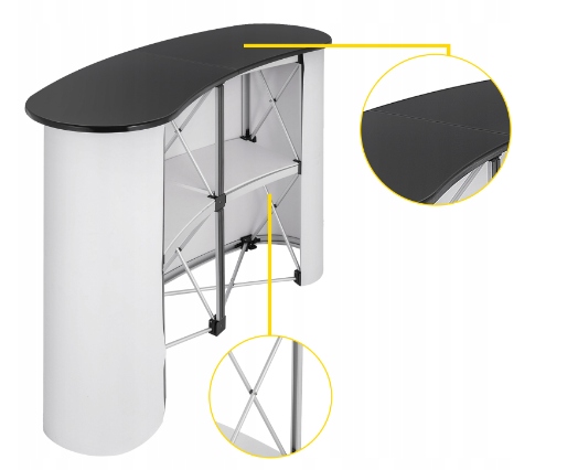 ЧУДОВА ЯКІСТЬ - Прилавок має міцну алюмінієву раму та лаковану дерев’яну стільницю, яка є міцною. Обтічний дизайн надає вашому заходу чи виставці більш професійного вигляду.