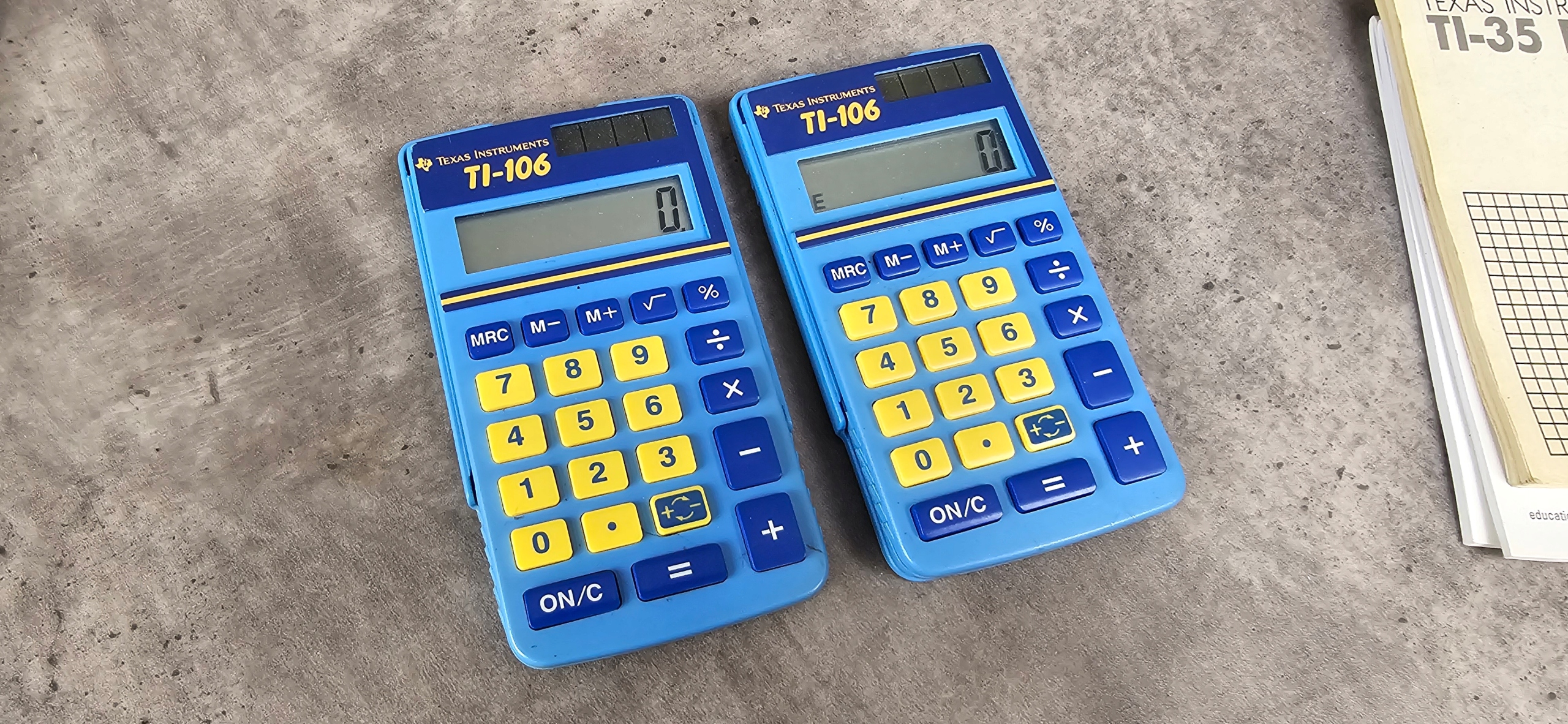 Trzy stare kalkulatory TEXAS INSTRUMENTS TI-35 PLUS TI 106