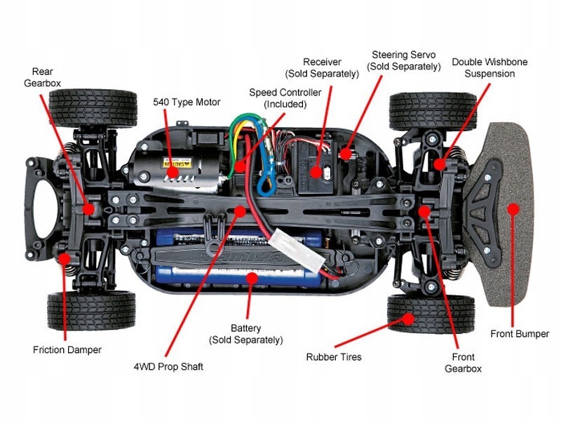 Модель оснащена двигуном підвищеного крутного моменту RS540 Torque Tuned Tamiya 54358.
