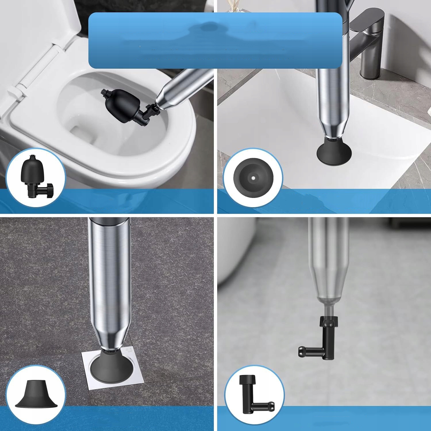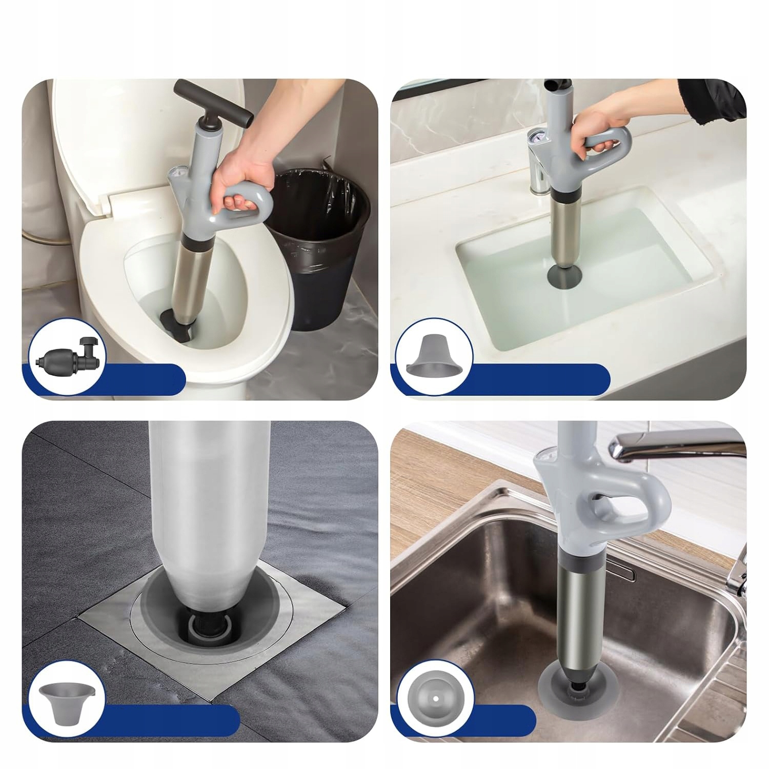 🚽🚽🚽【 Конструкція насоса високого тиску】: Туалет з високим тиском використовує потужність стисненого повітря високого тиску (максимальний 8 бар), щоб легко очистити закупорки труби за секунди. Його можна повторно використати після надуття один раз. Швидше та ефективніше, ніж традиційні плунжери, туалетні котушки та туалетні шнеки. It can be used in toilets, bathtubs, squat toilets, floor drains, kitchen sinks, vegetable sinks, pipe clogs, etc. And our replaceable head has good sealing and is not easy to splash water.