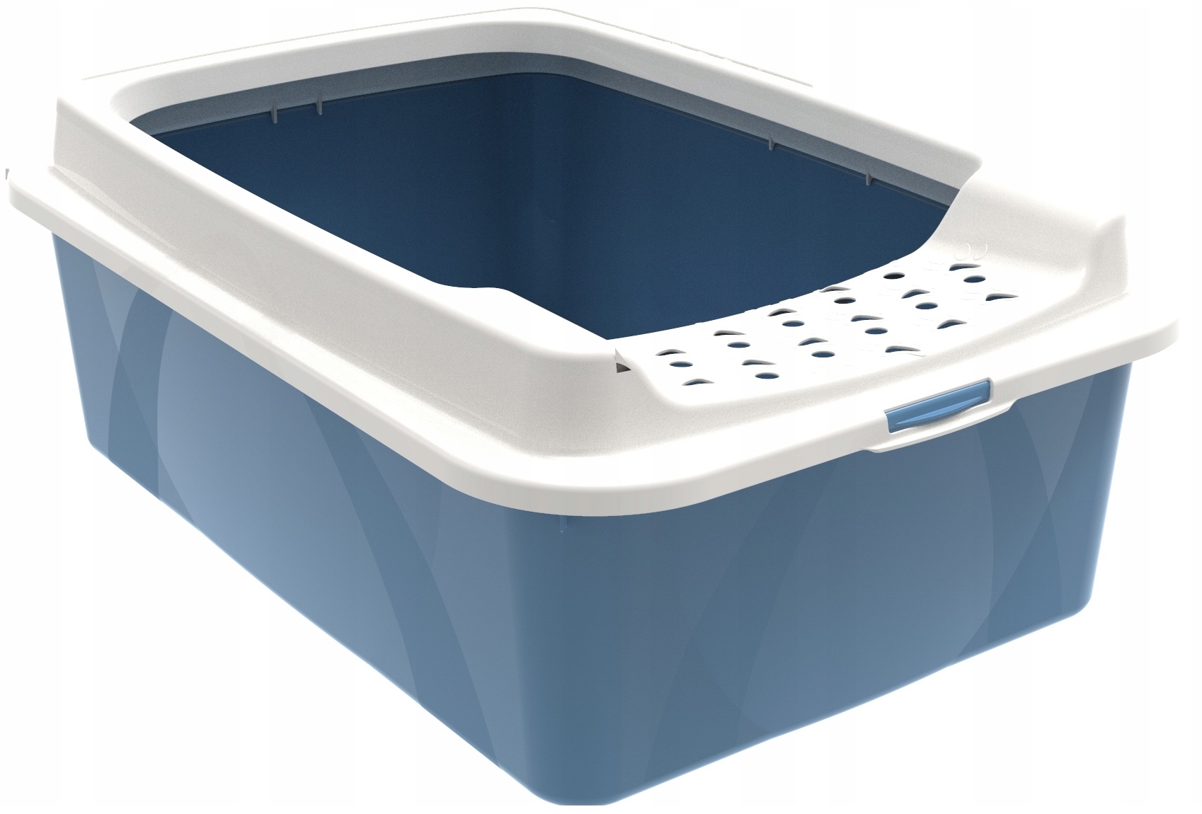- Сучасний лоток із входом у верхній частині. Також підходить для великих порід завдяки великому отвору. Контейнер широкий і глибокий, що дозволяє кожному коту знайти своє місце. Високі бічні стінки забезпечують захист від протікання. Кришка лотка розроблена таким чином, щоб якомога менше сміття вилітало разом з котячими лапами завдяки маленьким отворам у формі котячих лап. Знімна кришка дозволяє легко чистити.