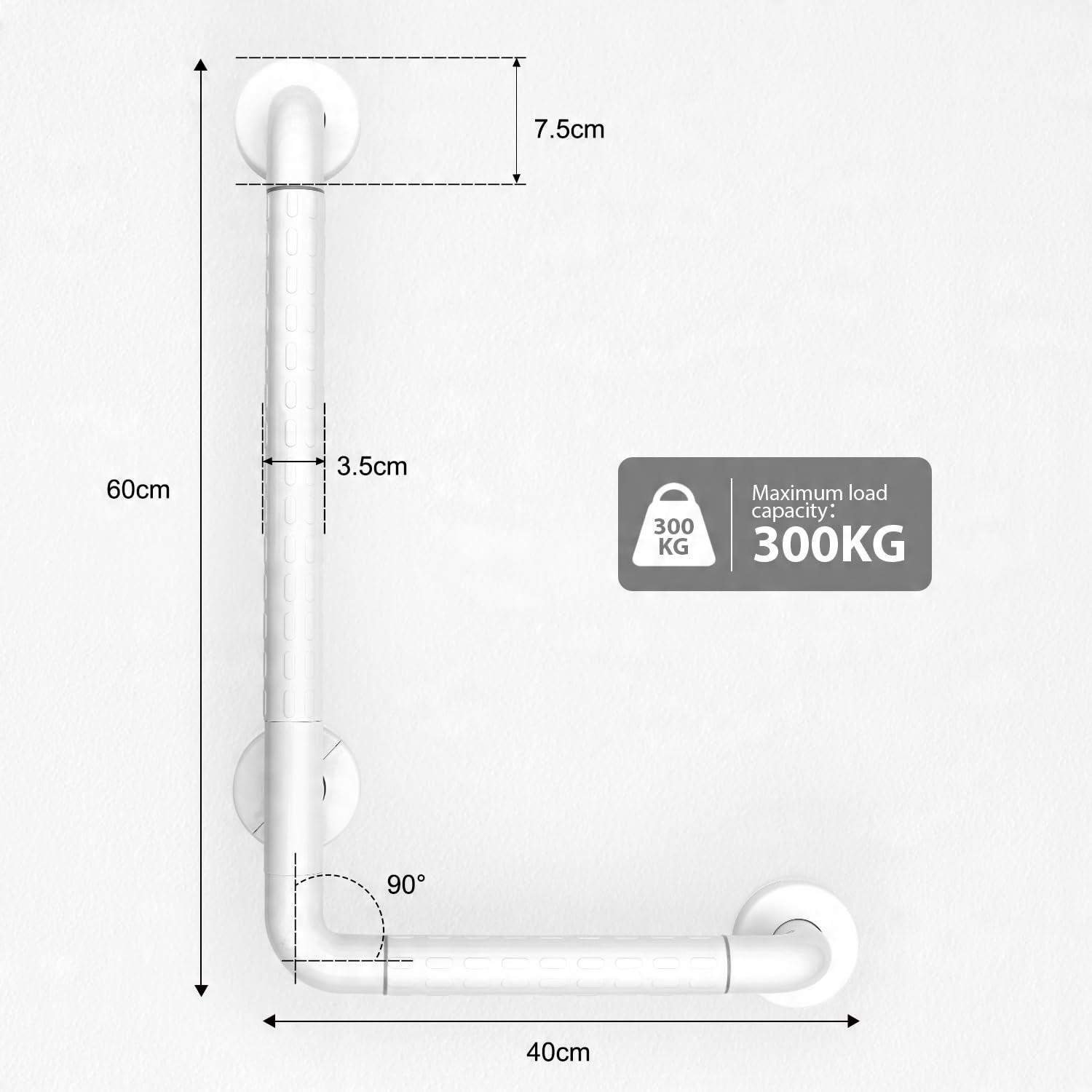 【модний зовнішній вигляд】 Власник ванни виготовлений з високоякісної нержавіючої сталі та пластику. Модний, матовий, білий кольори з куточком 90 ° виглядає просто і сучасно, збільшує безпеку та стиль ванної кімнати, а також робить його красивішим та безпечнішим. Максимальне навантаження: 300 кг.