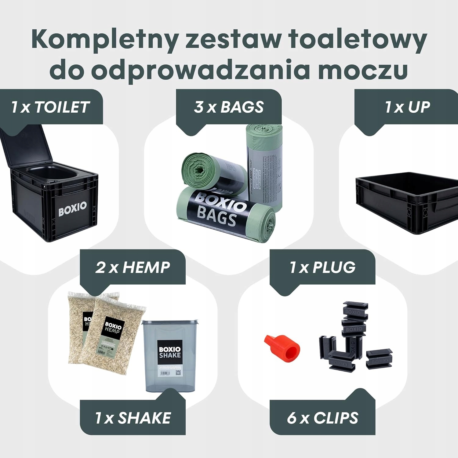 BOXIO TOILET, посилення сидіння TOILET UP, пробка з запахом, 2 x конопляні підстилки, 2 x мішки для сміття та 6 x кріпильних затискачів