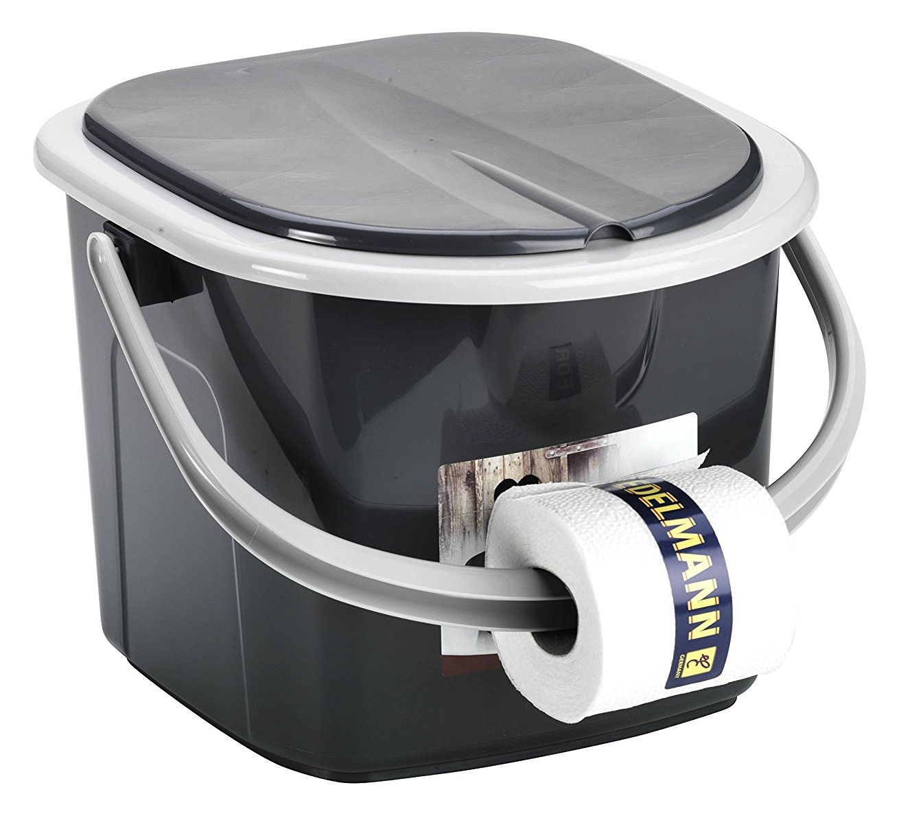 Унітаз-відро має зручне сидіння та клапан, а також практичну ручку, яка, з одного боку, дозволяє зручно переносити виріб і також зручна вішалка для туалетного паперу. Спеціальна виїмка в нижній частині відра і закруглена передня частина дозволяють зручно спорожняти унітаз.
