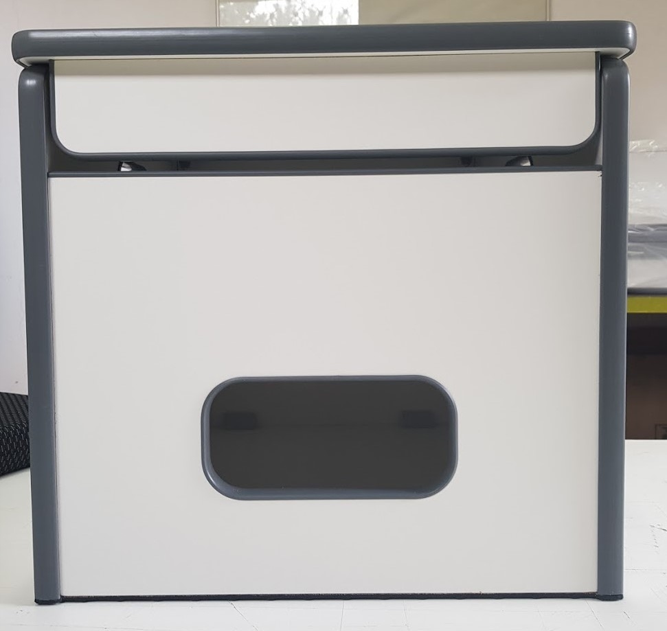 Біла шафа з сірою обробкою з портативним туалетом Thetford