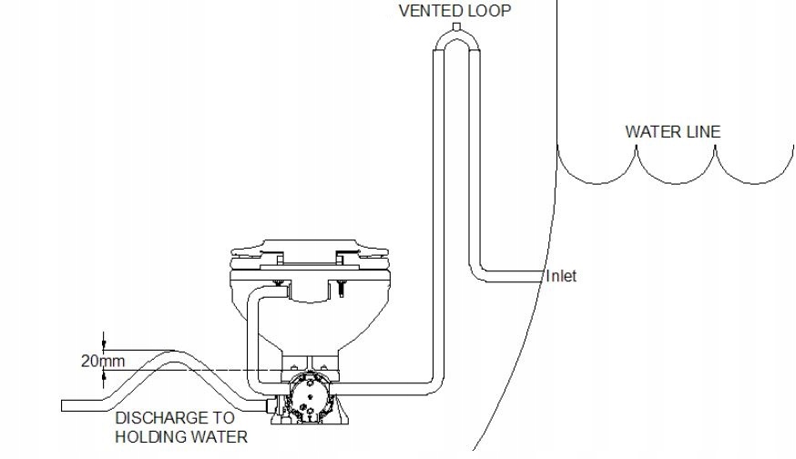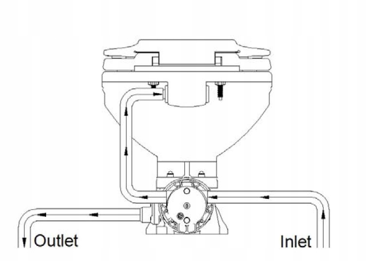 Яхтовий туалет з подрібнювачем LT-0E. Виготовлений з порцеляни та ПВХ, мецератор можна встановити в чотирьох різних положеннях.