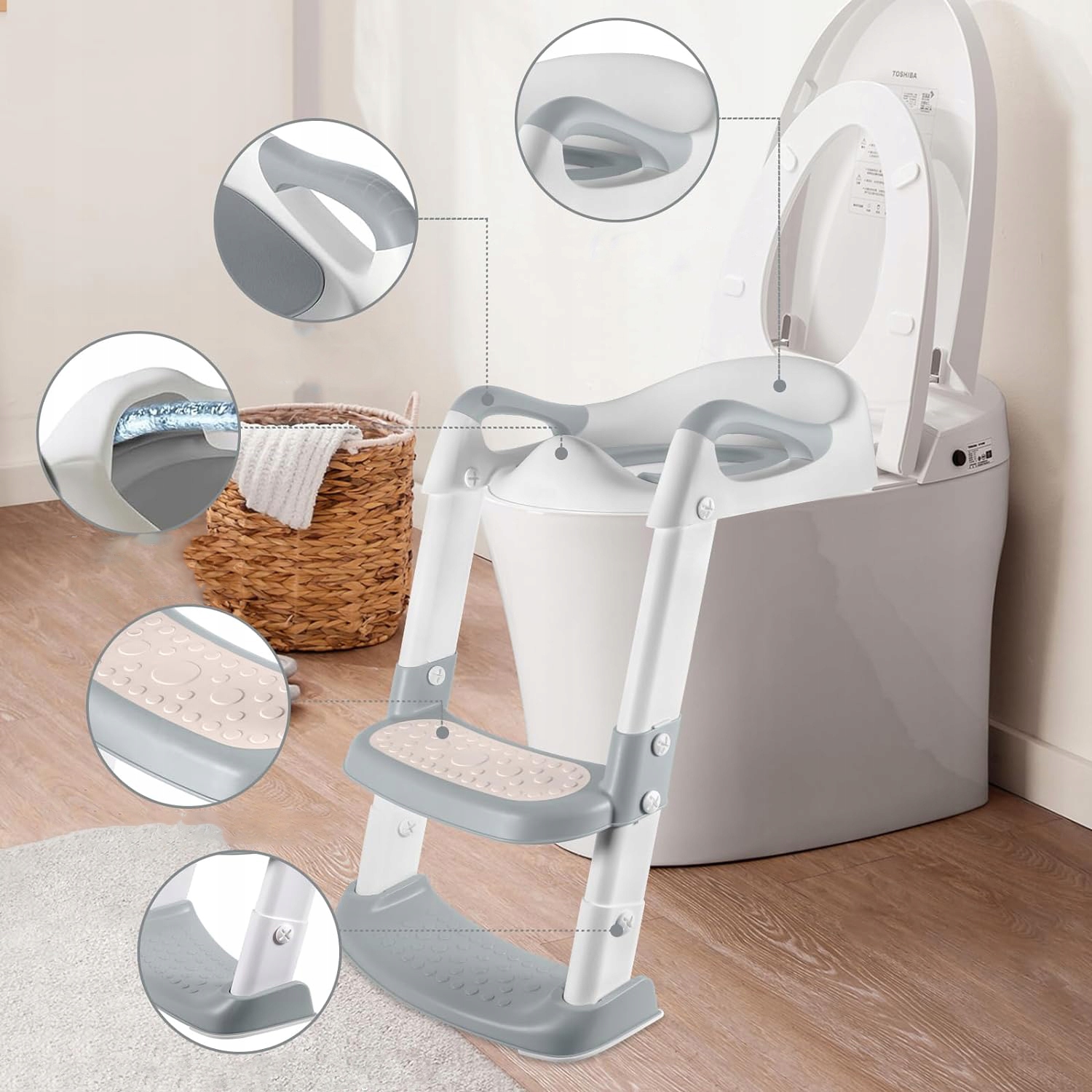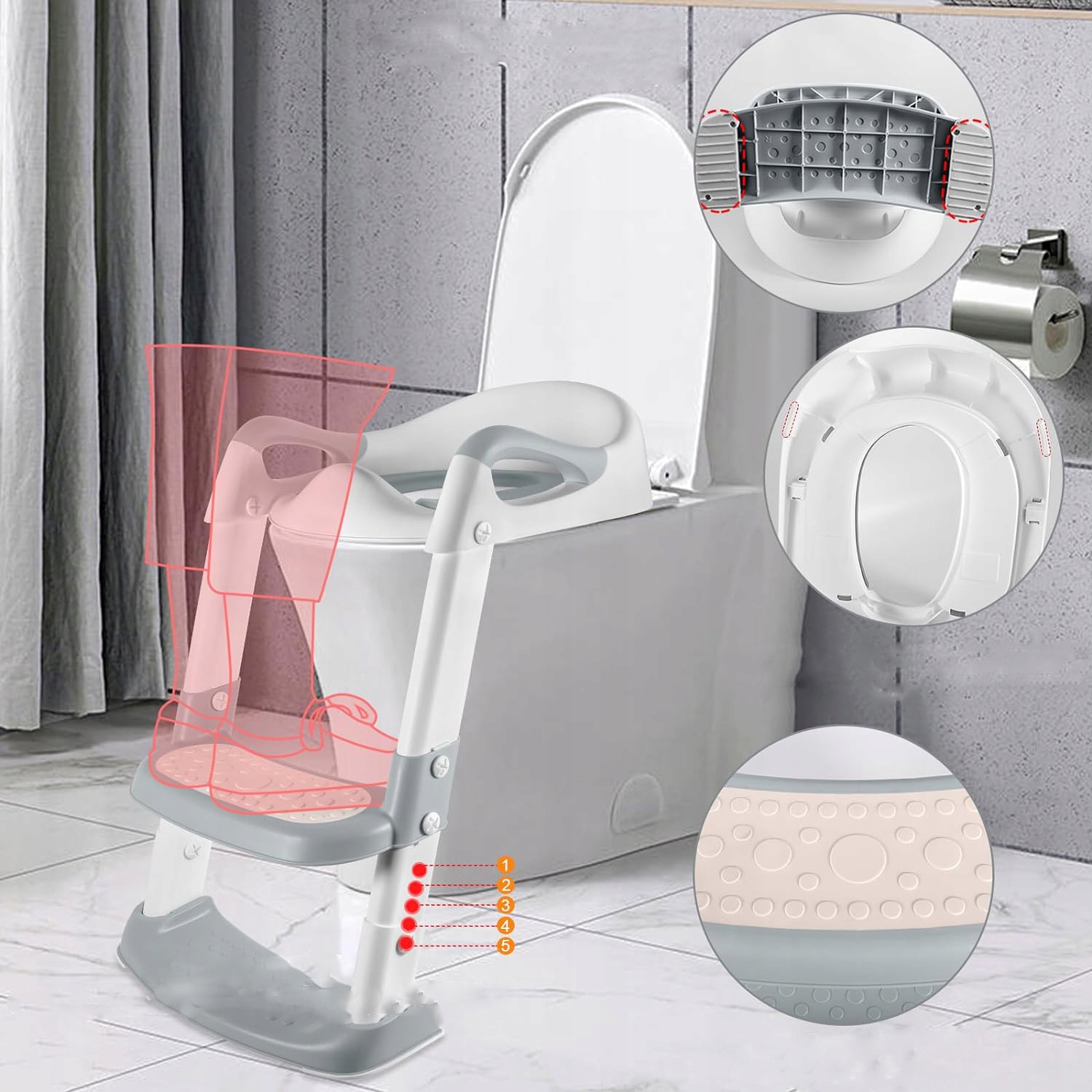 🚽【 Модернізована туалетна дошка для дітей】 Трикутна структура забезпечує кращу підтримку для дітей під час сходження. Крім того, ми розширюємо поверхню сходів до 30 х 12 см, щоб забезпечити дітям більше місця для обертання та усунення страху перед сходженням.
