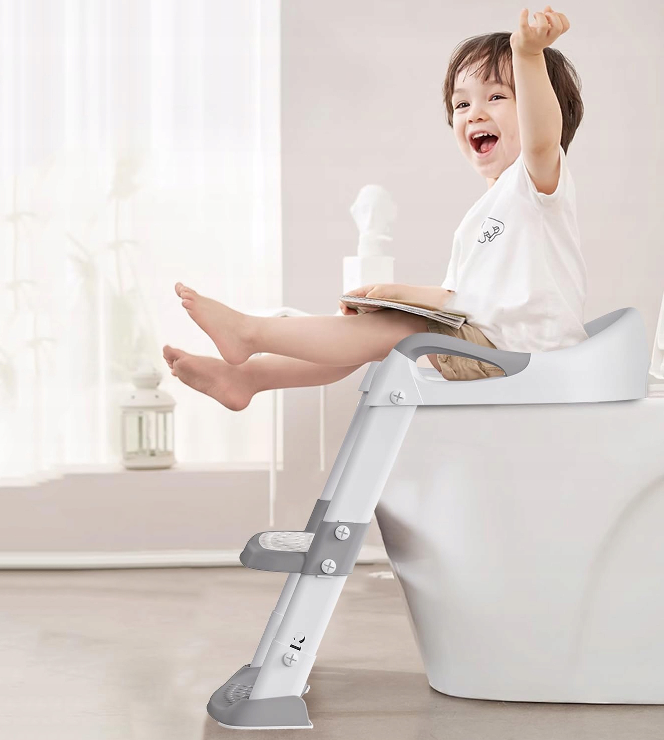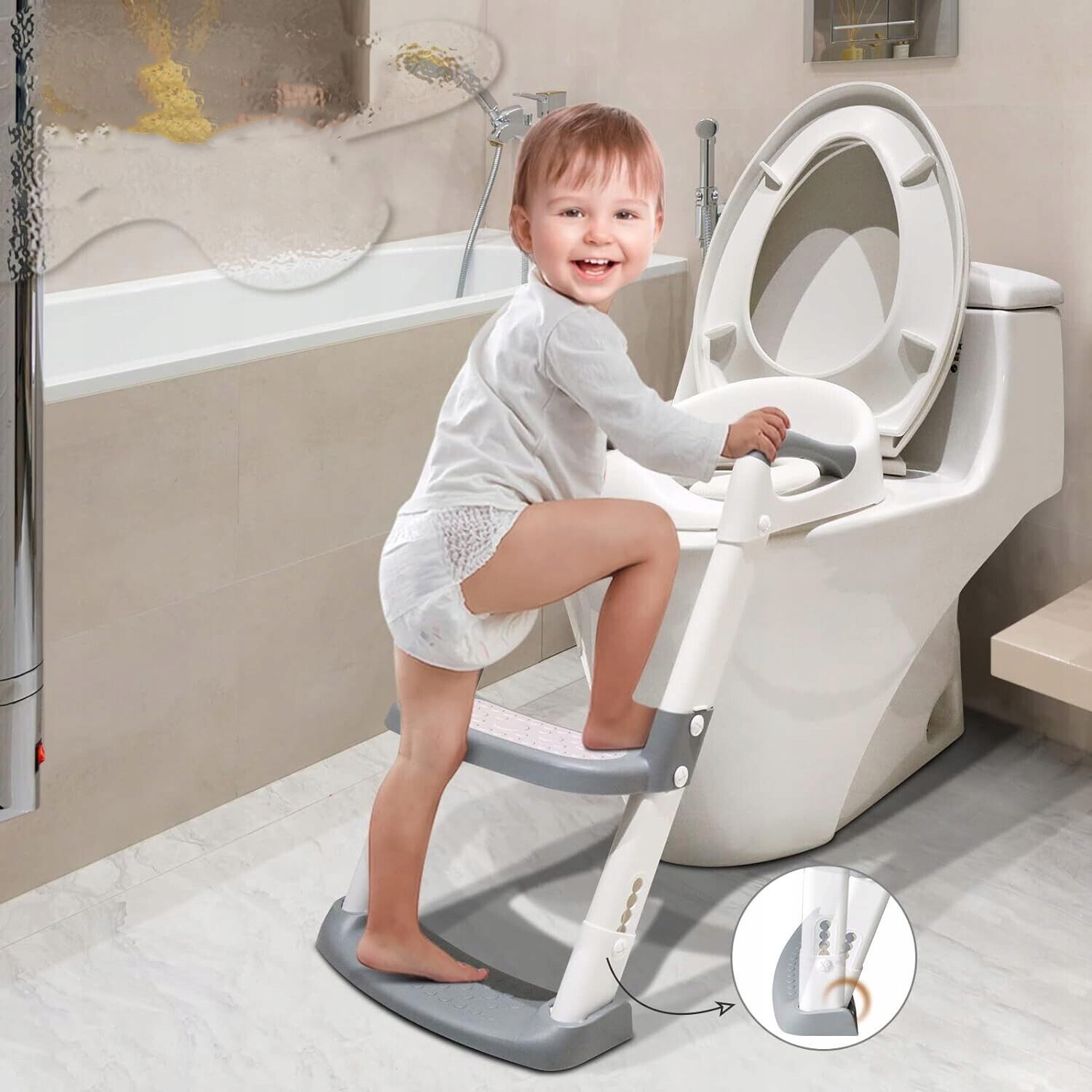 🚽【 сумісна з більшістю туалетів】 Ця навчальна дошка для дітей з кроками підходить до кожного стандартного туалету. Туалетна дошка для дітей з драбиною підходить для туалетів, укладених V, u і o. Безпечна та кумедна поїздка до туалету для дітей, завдяки регульованій висоті, це тренувальне крісло підходить для дітей різного розміру.