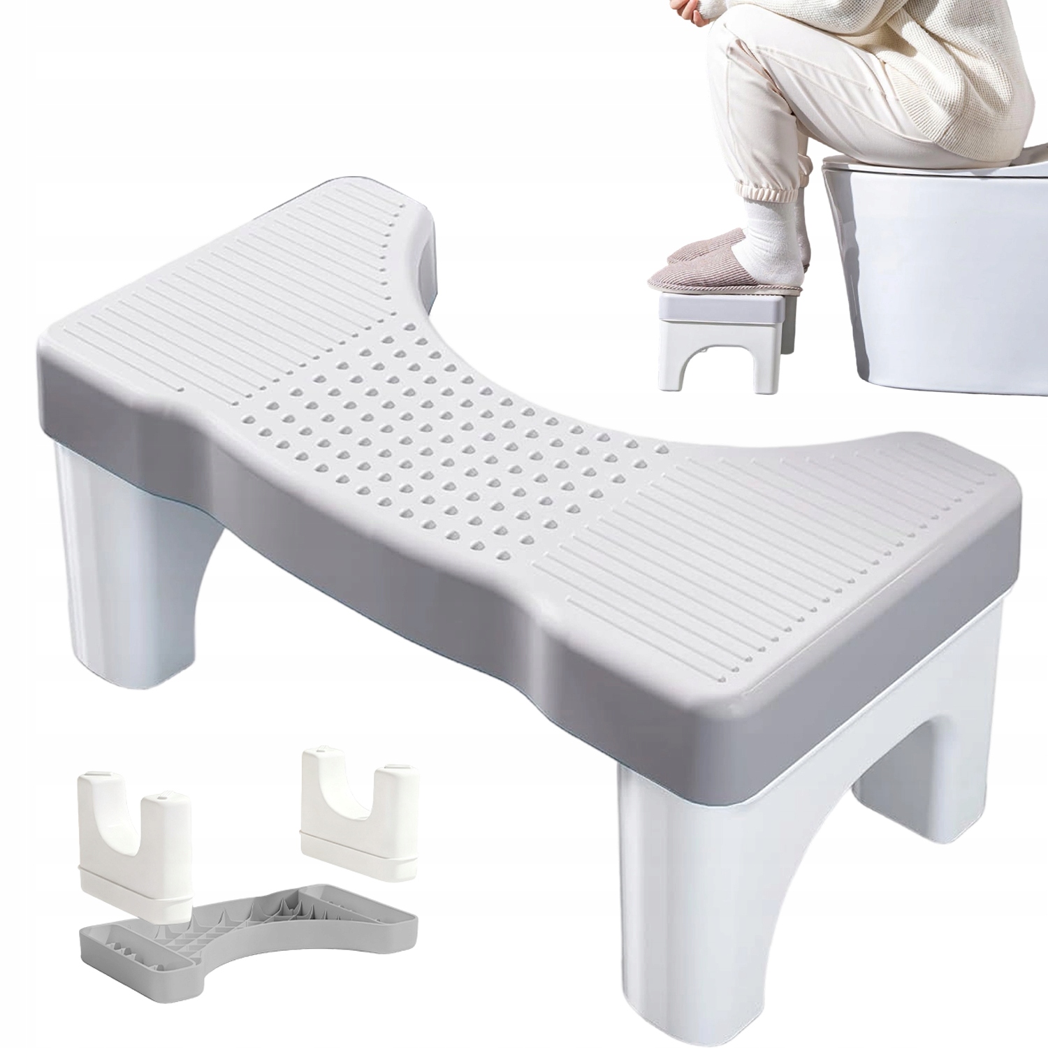 Просто поставте ноги на табурет так, щоб тіло було під кутом 35° до унітазу, щоб отримати ідеальне положення навпочіпки. Це дозволяє пуборектальним м’язам повністю розслабитися, сприяючи швидкому та повному спорожненню кишечника, ефективно усуваючи проблеми з запорами та гемороєм.