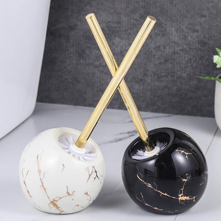 Аксесуари для ванної кімнати можуть бути не лише практичними, але й стильними! Правильна конструкція змушує звичайну туалетну щітку стати модним доповненням, яке доповнює розташування кімнати. Туалетна щітка з контейнером у мармуровому малюнку із золотими смужками. Продукт виготовлений з високоякісних матеріалів, придатних для використання в кімнатах з високою вологістю. Щітки щітки також виготовлені з твердого пластику. Туалетна щітка для самостійного.