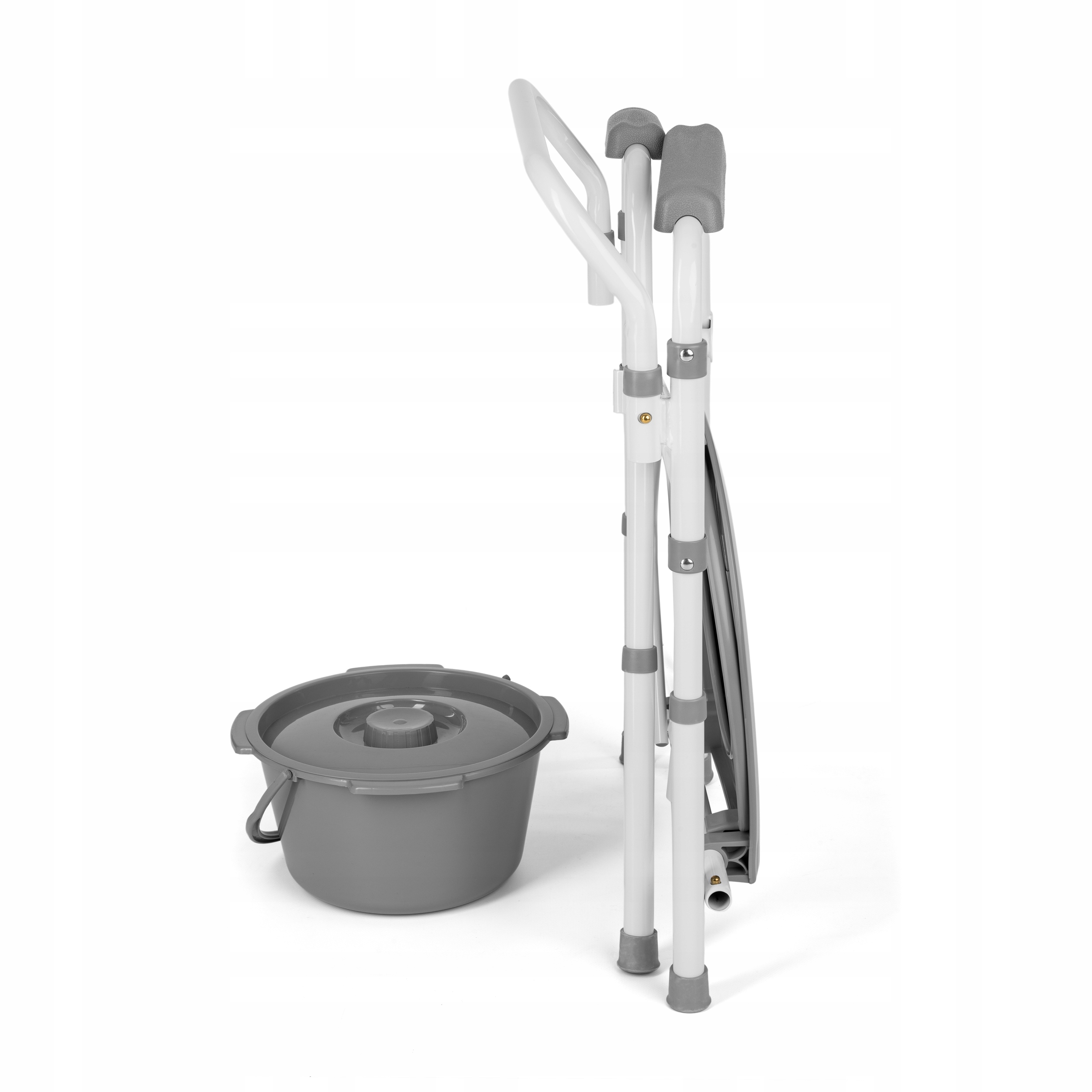 Переносний унітаз, складаний, зі швидкими з'єднаннями 618 Timago допомагає людям похилого віку з обмеженою рухливістю в повсякденній фізіологічній діяльності. Він підтримує сидіти та вставати.