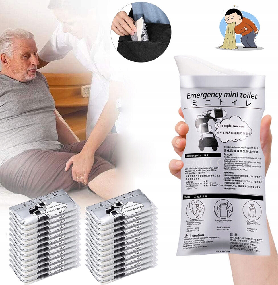 Ви отримаєте 12 пакетів для сечі, кожен з яких містить безкоштовний пакет для сміття для зберігання використаних пакетів для сечі, які легко викинути, не забруднивши рук. Чудово підходить для надзвичайних ситуацій або коли немає туалету.