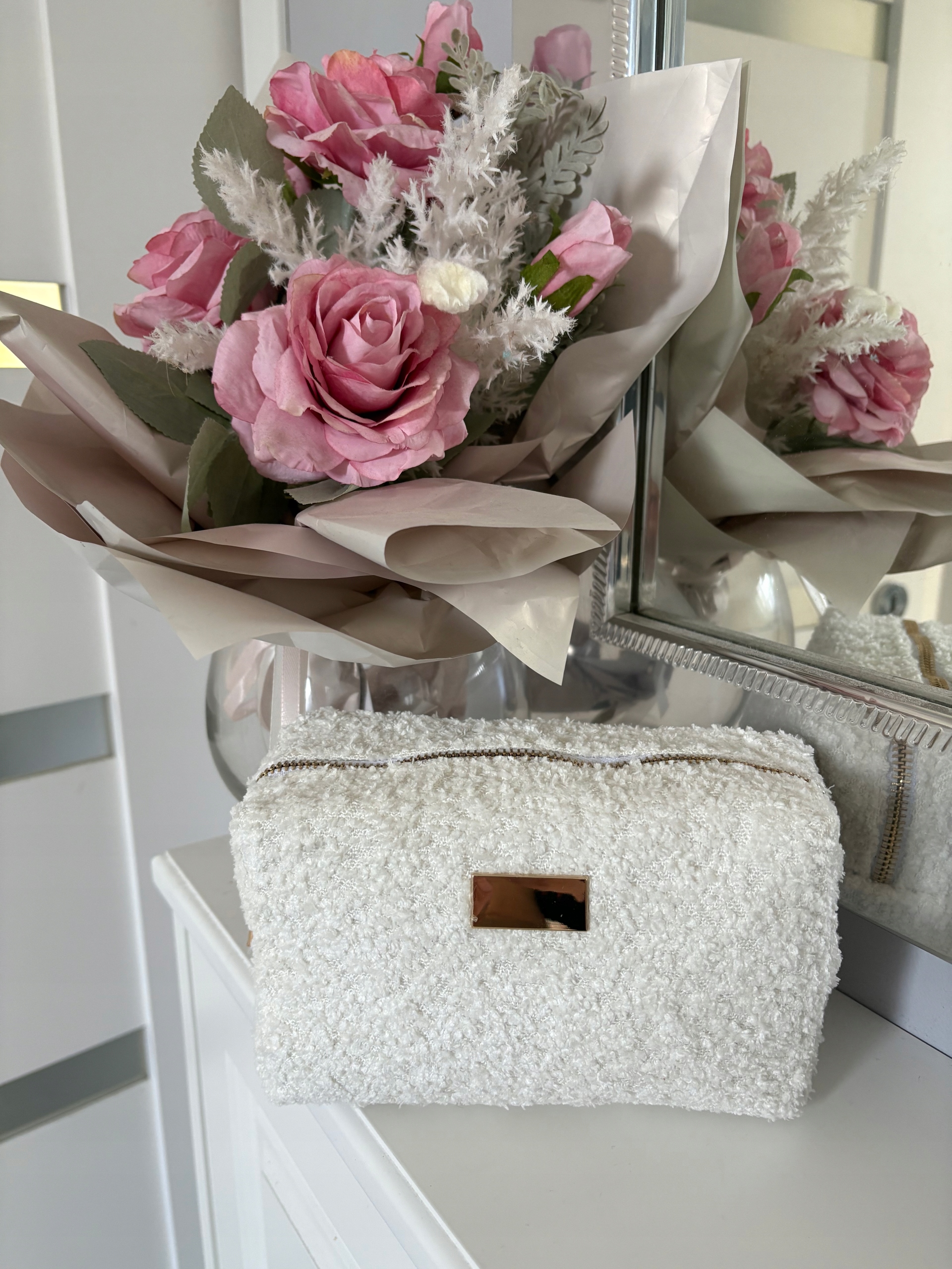 Я представляю прекрасного класичного косметолога з дуже хорошого виду матеріалу, завершеного водонепроникною підкладкою золотистого кольору.