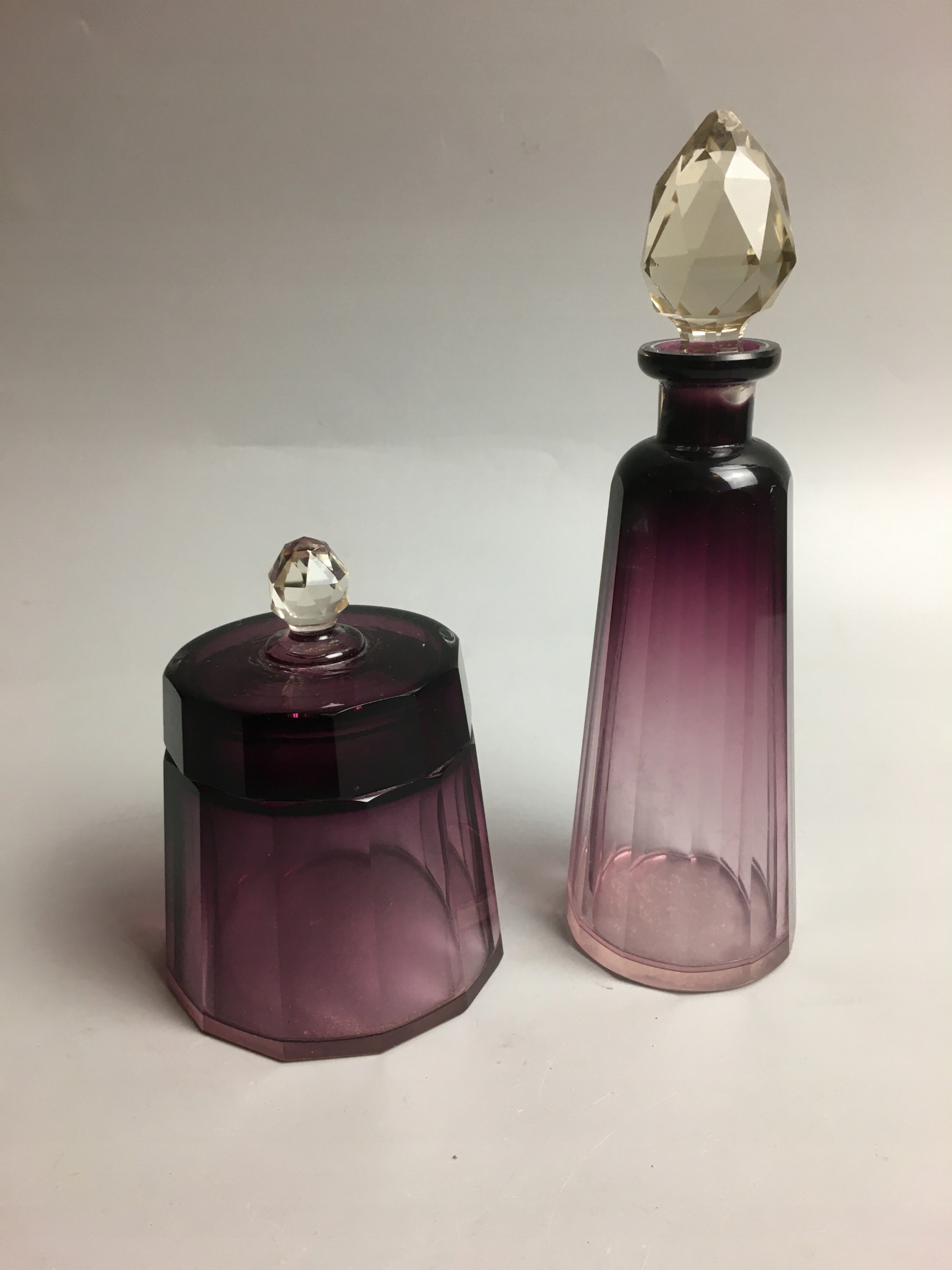 Набір виготовлений з фіолетового скла з кришталевими пробками.