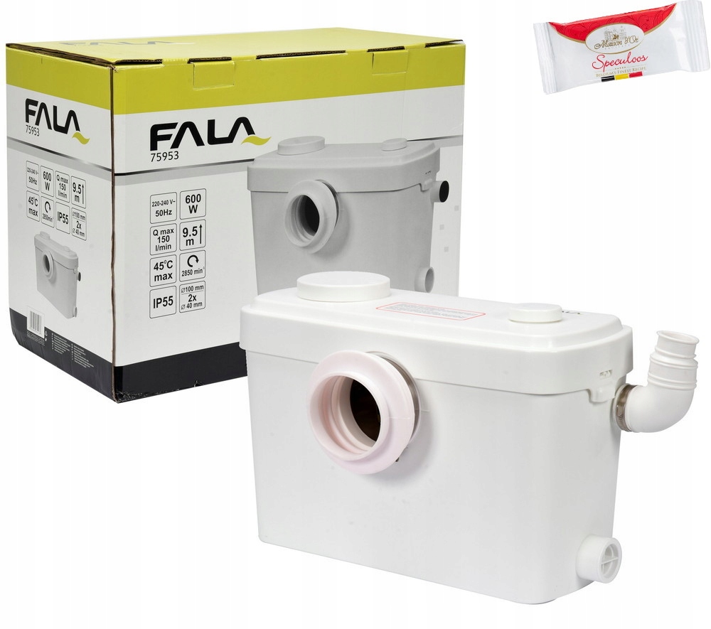 Ефективний санітарний насос із подрібнювачем, оснащеним тихим двигуном потужністю 600 Вт.