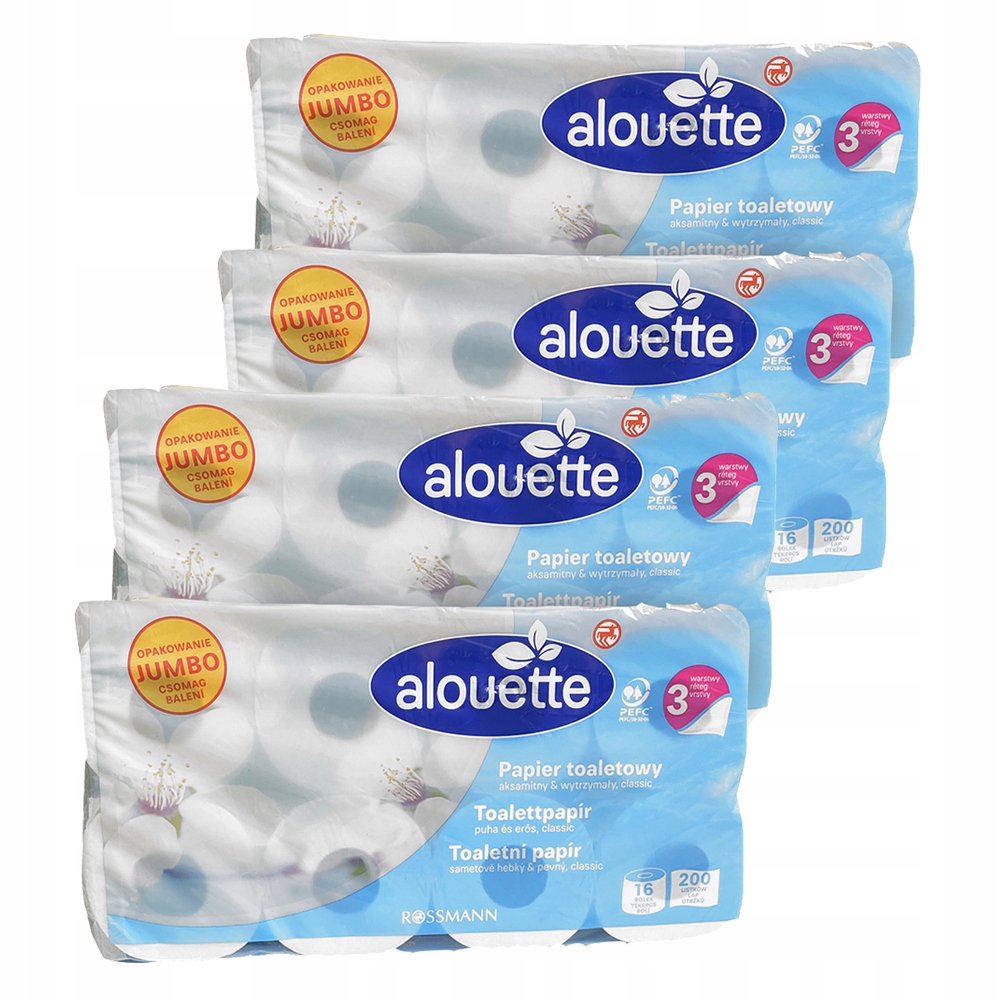 4x ТУАЛЕТНИЙ ПАПЕР ALOUETTE 16 РУЛОНІВ JUMBO УПАКОВКА = 64 РУЛОНИ