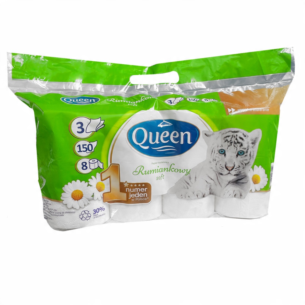 Надзвичайно м'який тришаровий туалетний папір QUEEN chamomileце делікатний продукт з високоякісної целюлози, перевірений багатьма поляками!
