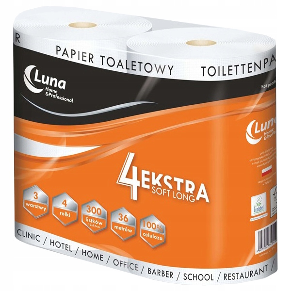 М'який довгий туалетний папір 4ekstra складається з трьох шарів целюлози та упакований в зручну упаковку для зручності транспортування та зберігання в гігієнічних умовах. Багатоцільовий папір, особливо призначений для місць інтенсивного використання - готелів, квартир, конференц-залів.