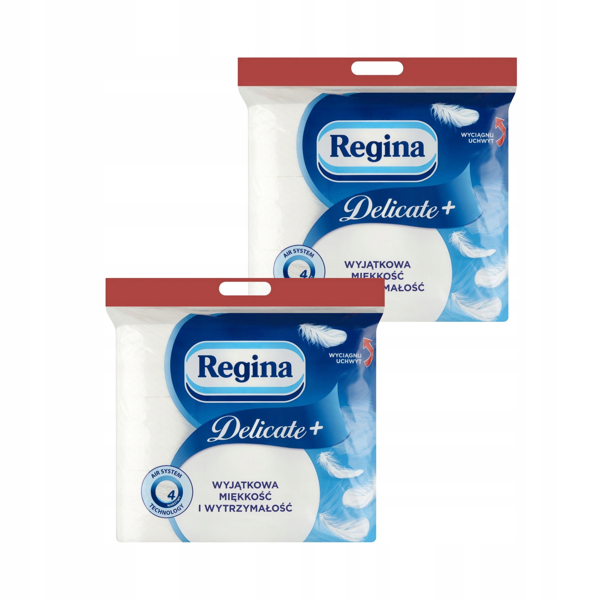 Технологія повітряної системи. Унікальна система «повітряної подушки», завдяки якій чотири шари паперу з’єднані між собою, створюють крихітні заповнені повітрям камери, завдяки чому папір Delicate+ досягає м’якості, якої ви ніколи раніше не відчували. Відчуйте різницю. Власна технологія продуктів Regina.