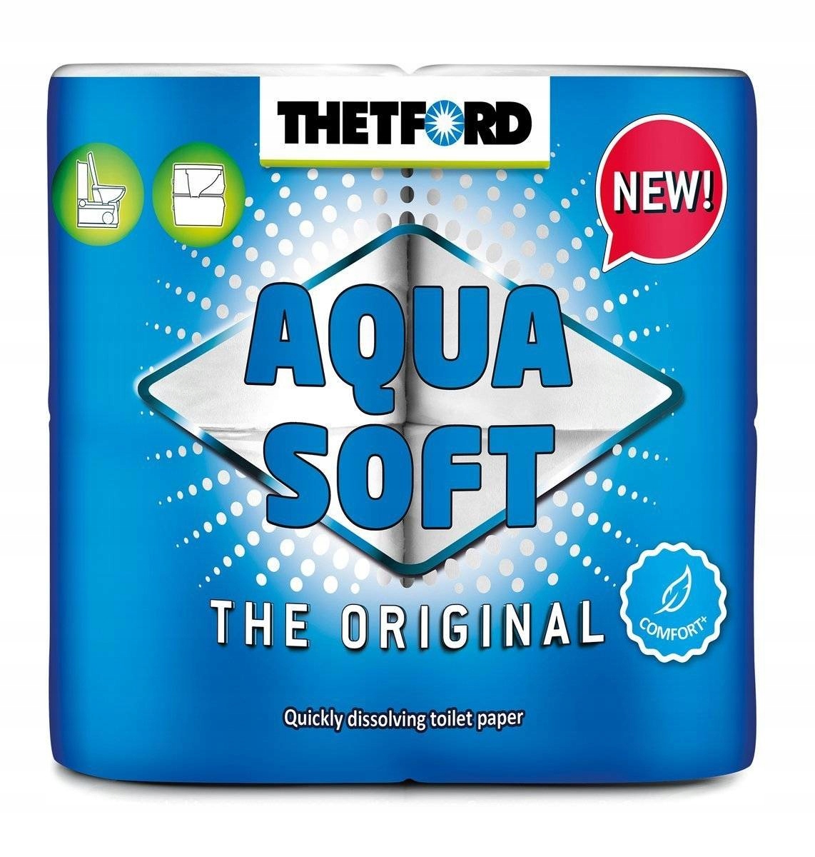 Надзвичайно м'який і екологічно чистий туалетний папір. Швидко розчиняється в резервуарі, не створює заторів і не засмічує унітаз. У поєднанні з рідинами для верхнього і нижнього баків він повністю деградує. Упаковка з чотирьох рулонів Суперм’яка Розчиняється в резервуарі Запобігає засміченню або пошкодженню бака для відходів у туалетах Ідеально поєднується з рідинами для портативних туалетів Полегшує спорожнення та очищення туалетів