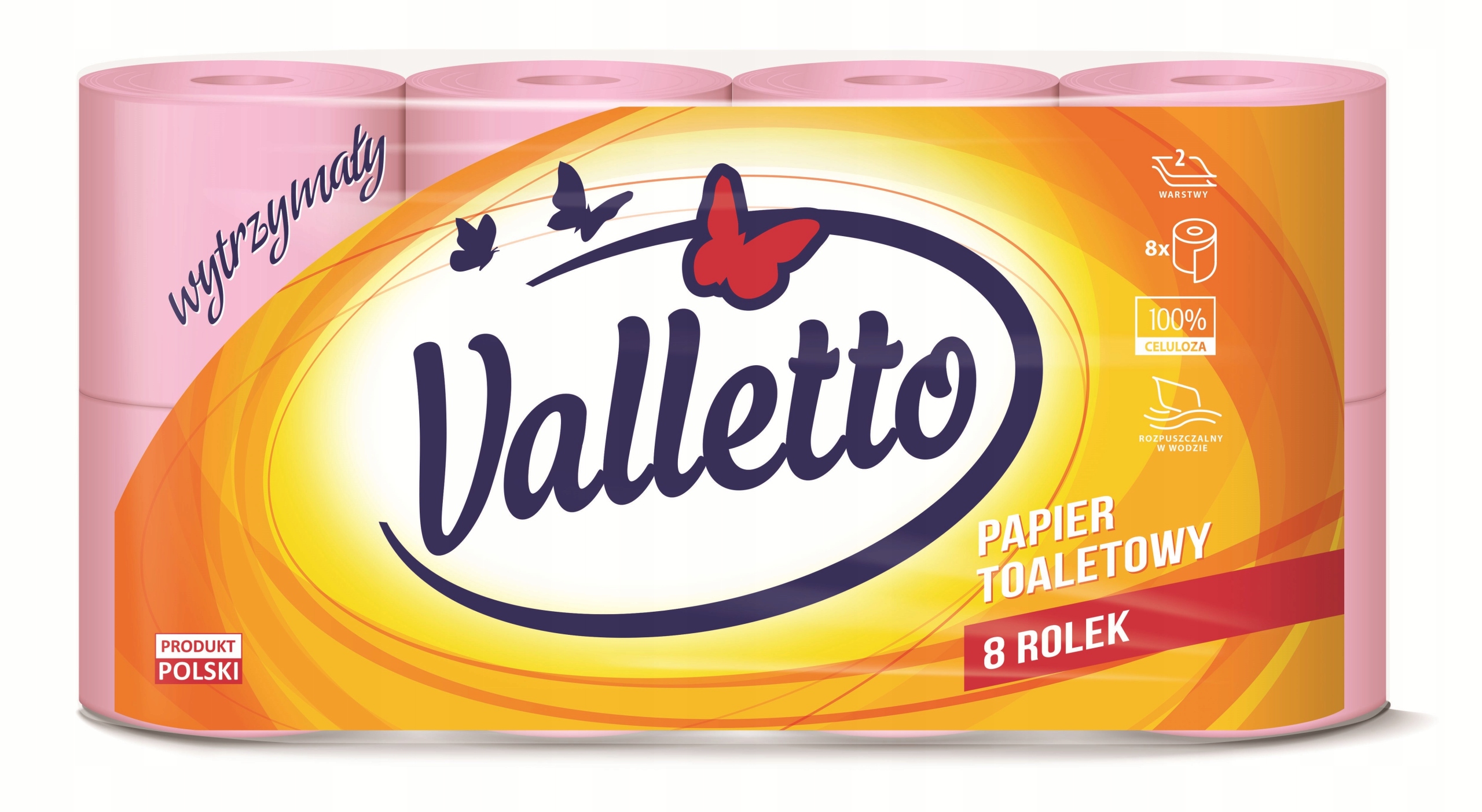 Туалетний папір VALLETTO 2W 8 рулонів рожевий