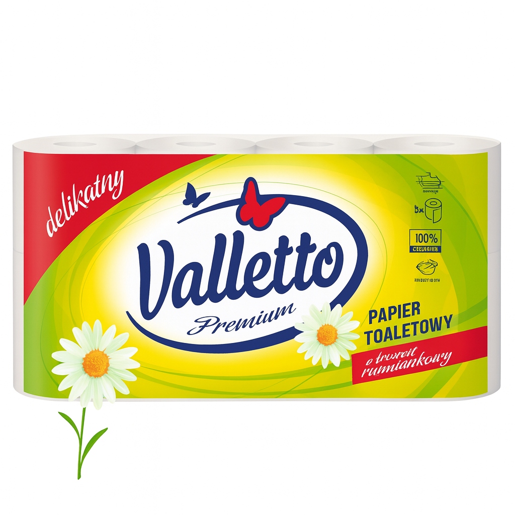 ТУАЛЕТНИЙ ПАПІР VALLETTO 3-ШАРОВИЙ УПАКОВКА 8 РОЛИКІВ РОМАШКА
