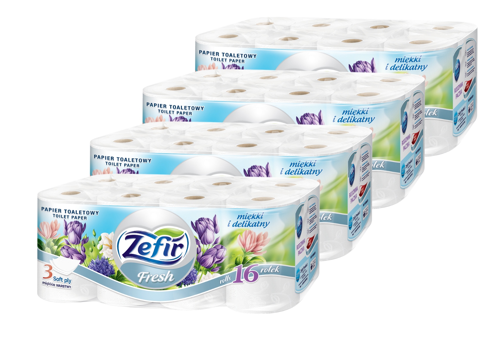 Завдяки поєднанню відмінної якості з винятковими показниками, кожна ванна стане справжнім задоволенням. Zefir Fresh - це туалетний папір, який забезпечує делікатність і м'якість на кожному кроці. Завдяки трьома шарам він ідеально поглинає і захищає шкіру, забезпечуючи відчуття розкоші під час щоденних гігієнової ритуалів.