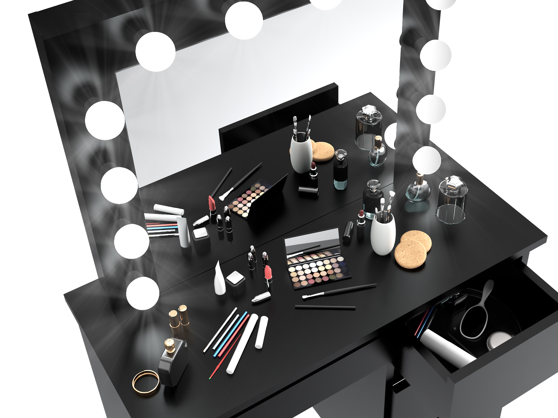 Відчуйте себе справжньою голлівудською зіркою перед тим, як вийти на сцену. Влаштуйтеся зручно та відчуйте світло 12 ідеально підібраних лампочок найкращого, нейтрального кольору для нанесення макіяжу.