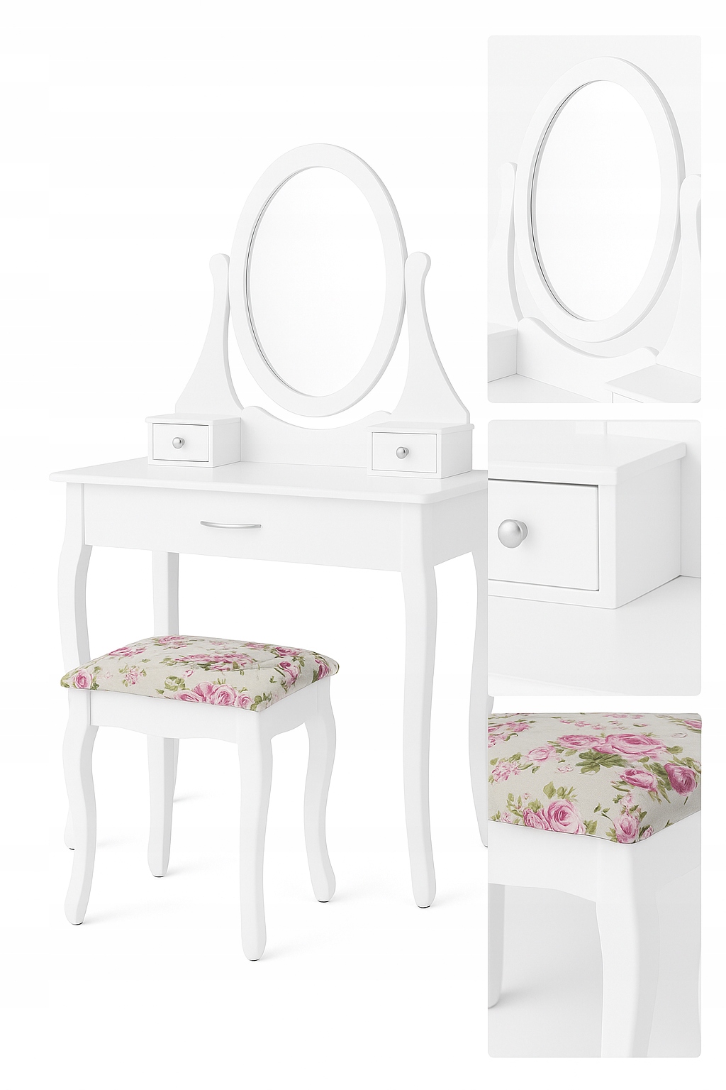 ТУАЛЕТНИЙ СТОЛИК КОСМЕТИЧНИЙ З ДЗЕРКАЛОМ БІЛИЙ + ТАБУРЕТ МОДЕЛЬ ELEGANCE 002