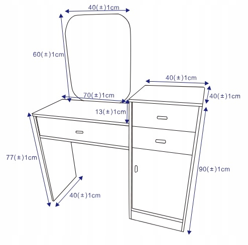 - РОЗМІРИ ВИРОБУ: Столик для макіяжу має розміри 110 x 76 x 40 см (Ш x В x Г). Загальна висота туалетного столика 137 см