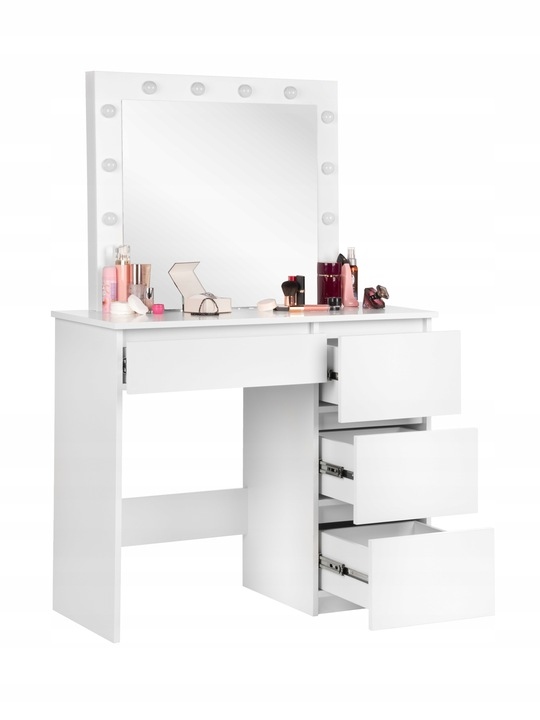 Велике дзеркало зі світлодіодним підсвічуванням в трьох кольорах і чотири містких висувних ящика зроблять повсякденний догляд і макіяж комфортними і приємними.