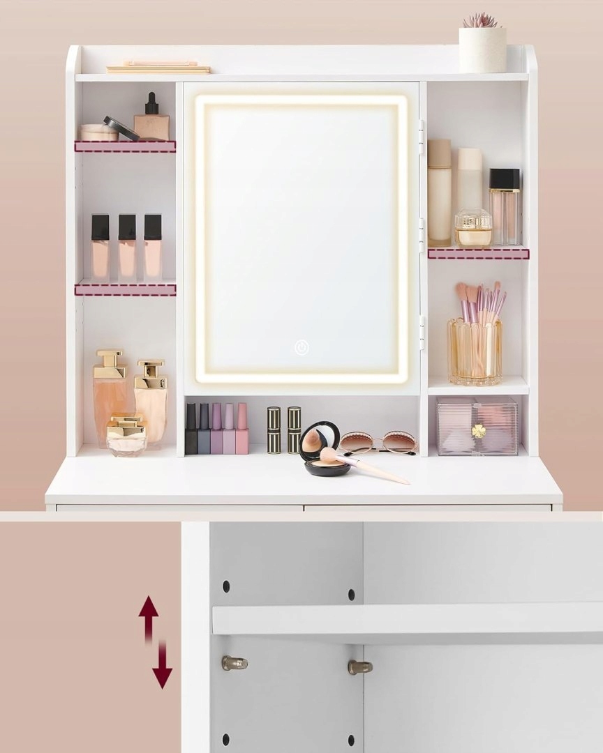 Туалетний столик зі світлодіодним підсвічуванням, регульована яскравість, туалетний столик із дзеркалом, унітаз