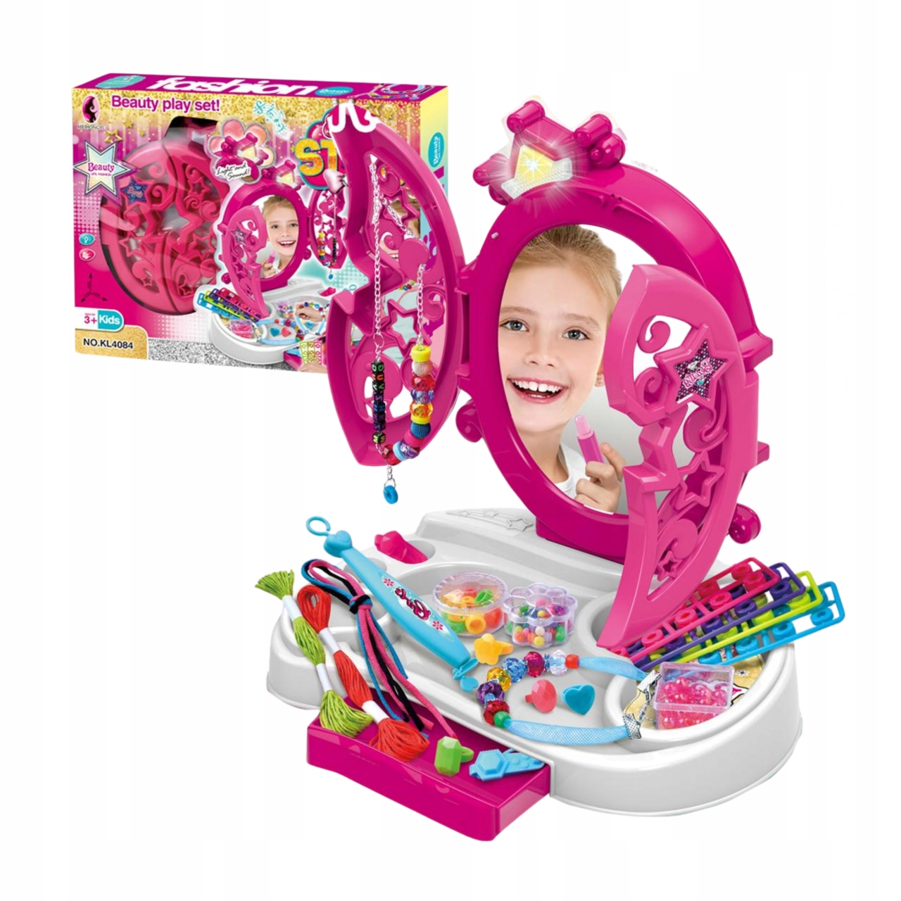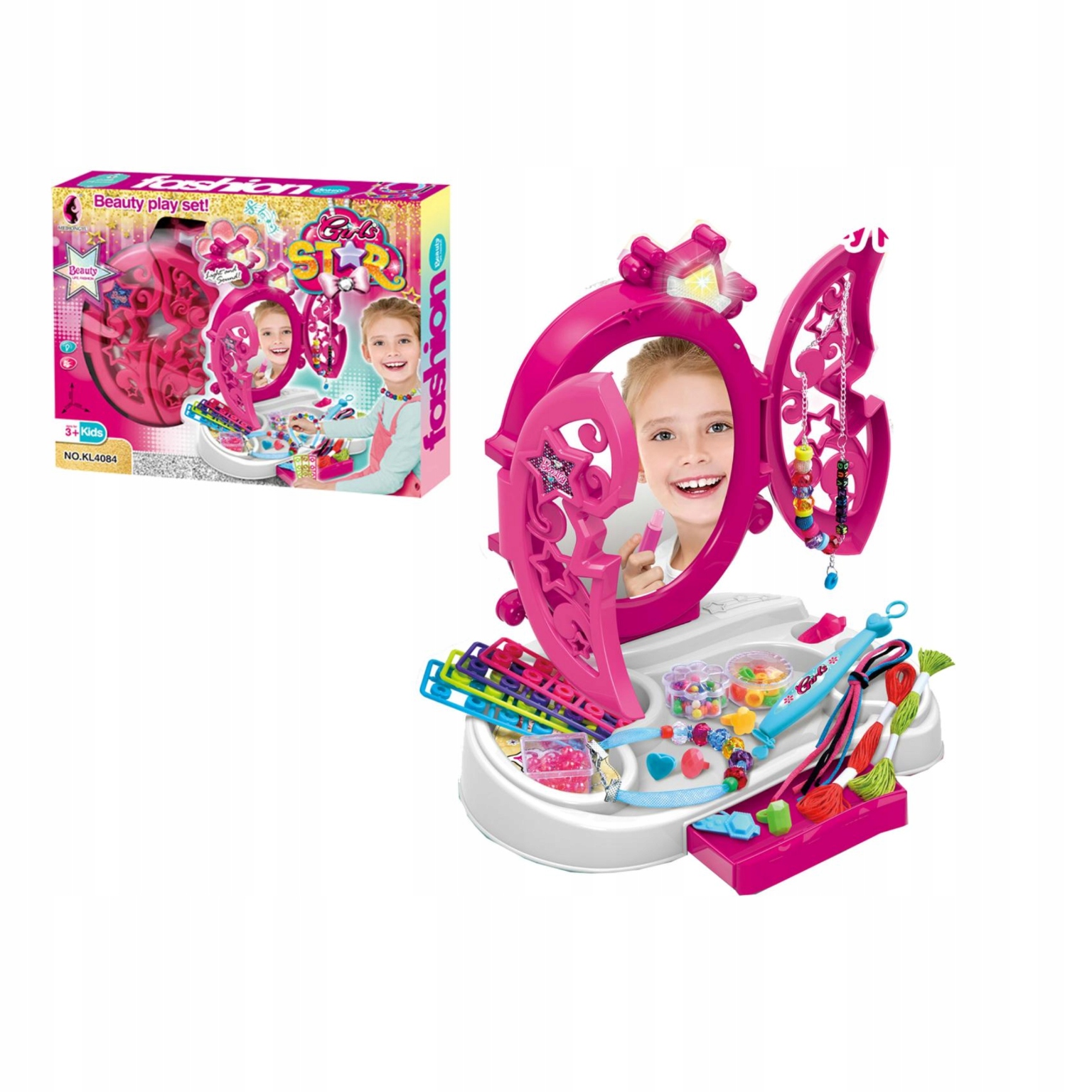 ТУАМЕТНИЙ СТОЛИК ДЛЯ ДІВЧИНКИ НАБІР КРАСИ СВІТЛІ ДЗЕРКАЛЬНІ АКСЕСУАРИ