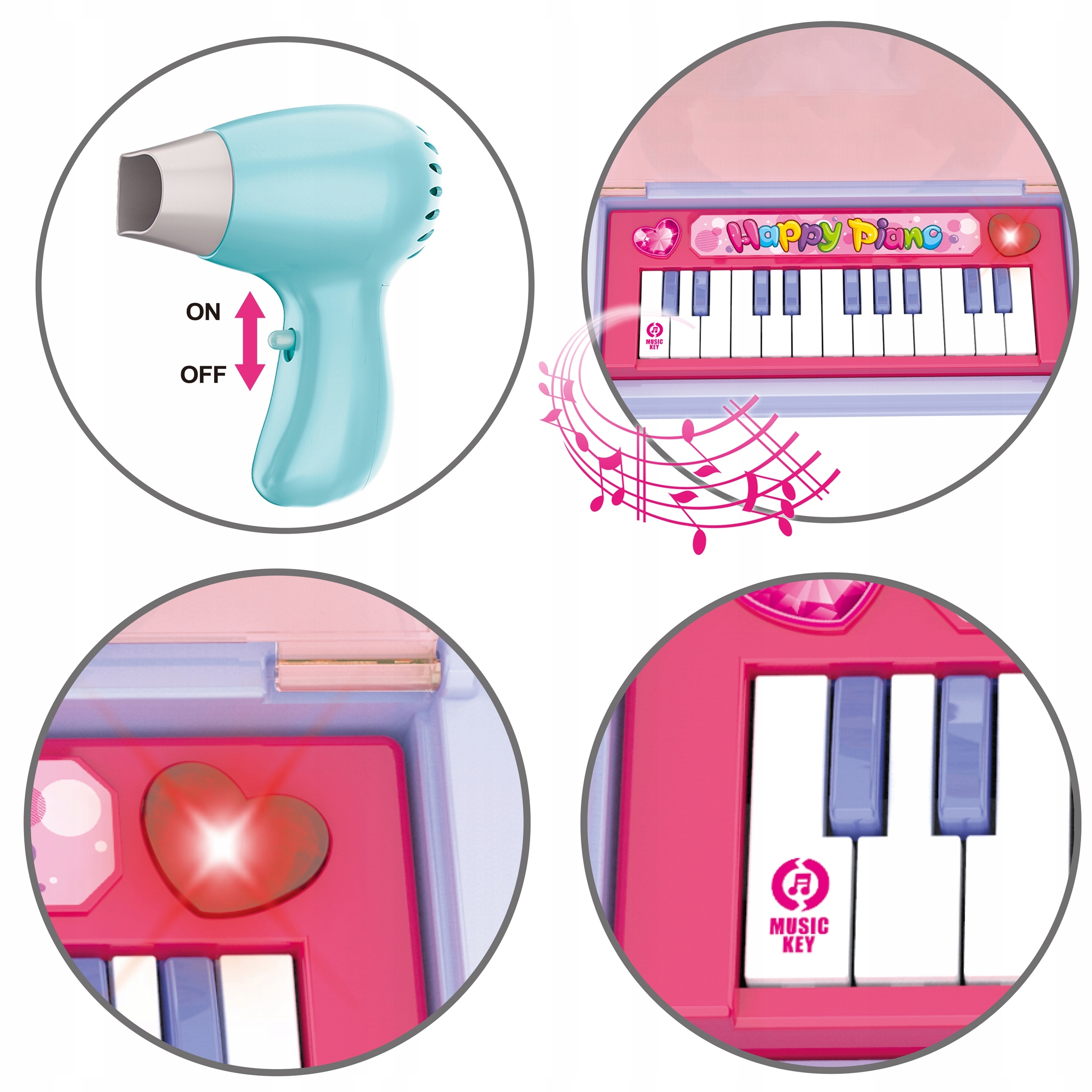 ТУАЛЕТНИЙ СТОЛИК З ПІАНІНО ТА ТАБУРЕТОМ ДЛЯ ДІВЧИНКИ ЗІ СВІТЛОМ, ЗВУКОМ І СУШКОЮ