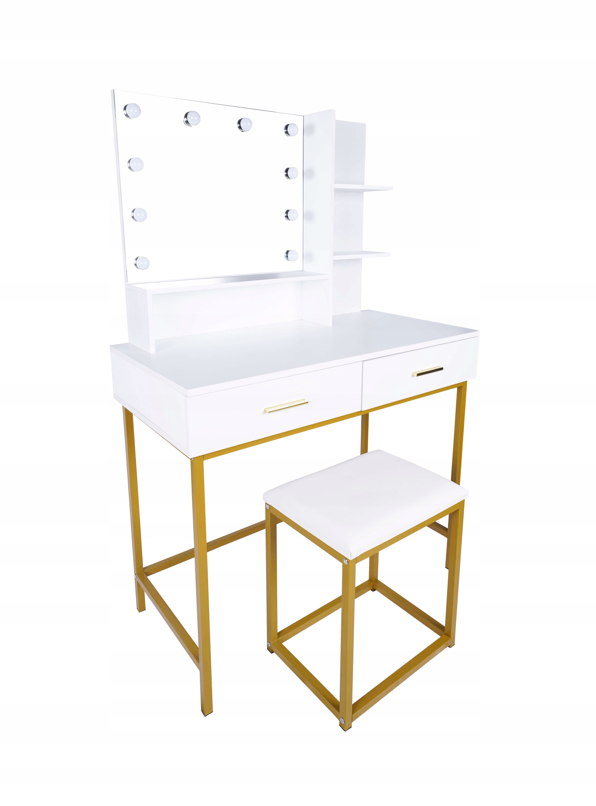 Модний і практичний туалетний столик від Meble Moskała білого кольору зробить ваш інтер'єр привабливішим. Золоті аксесуари додадуть вишуканості і точно впишуться в багато композицій. Якщо ви шукаєте сучасний і практичний предмет меблів, то туалетний столик Aurora ідеально підходить для вас!