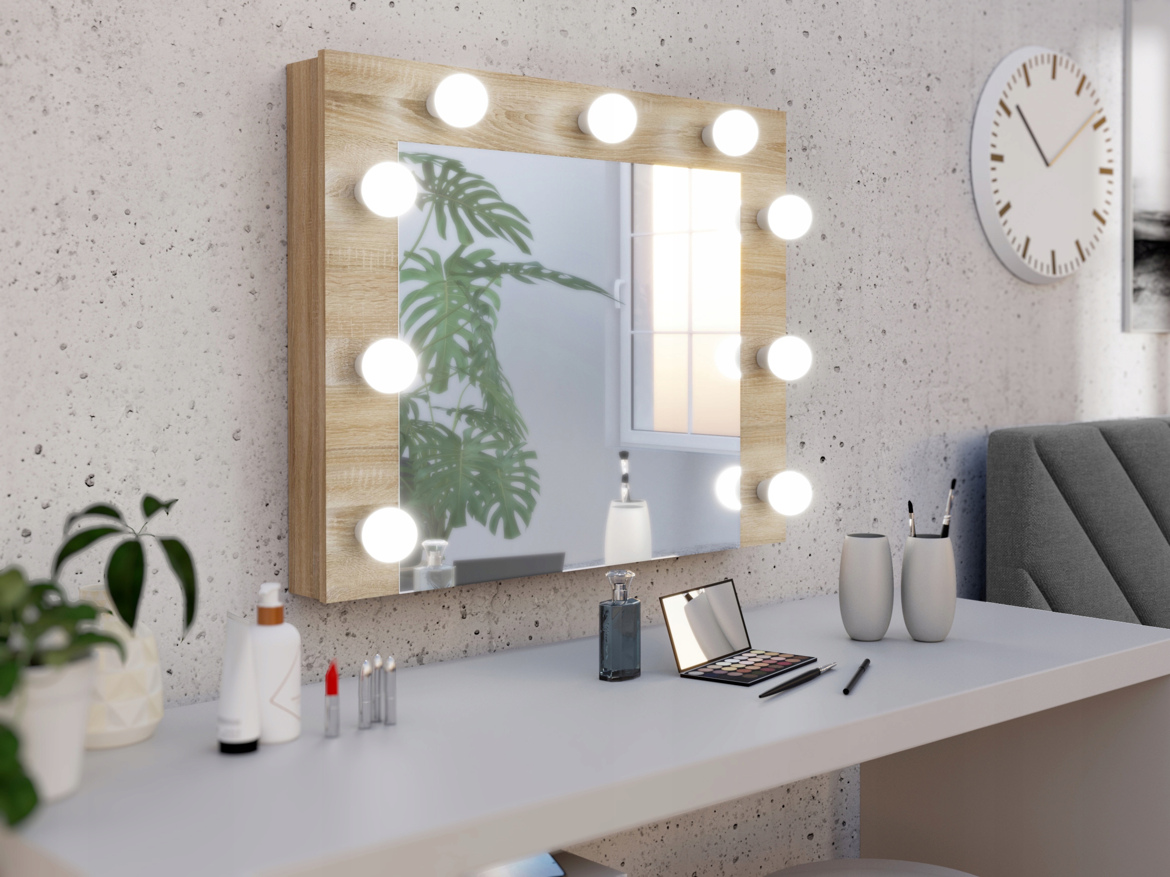Навколо дзеркала розташовано цілих 9 світлодіодних лампочок найкращого кольору для професійного макіяжу - нейтрально-білого, що забезпечує ідеальне освітлення шкіри.