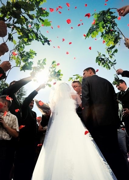 нареченого та нареченої після виходу з церкви, офісу реєстру або під час першого танцю у весільній залі. Лицарі