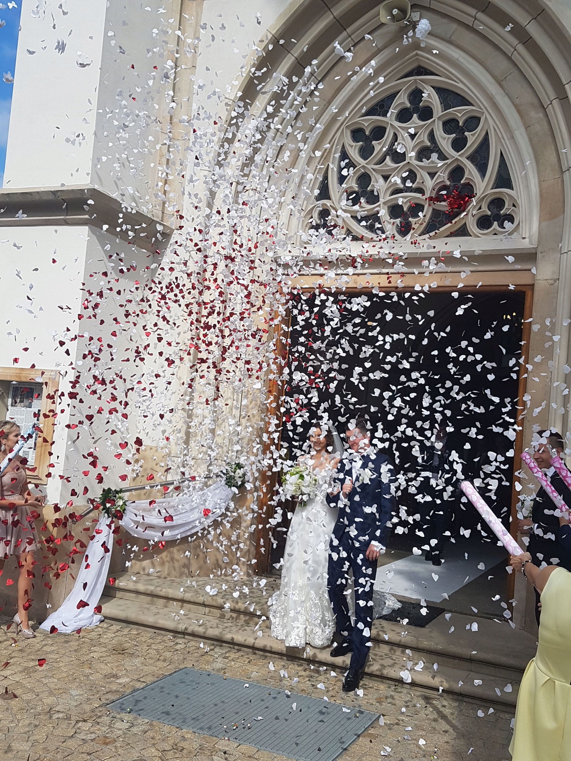 - ідеальна форма вшанування шлюбу молодят, які виходять з церкви, офісом реєстру. Вони ідеально і частіше стріляють по кімнатах під час першого танцю нареченої та нареченої. 4