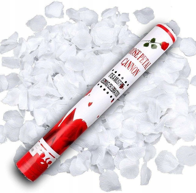 TUBA STRZELAJĄCA PŁATKI RÓŻ BIAŁA KONFETTI 30 CM