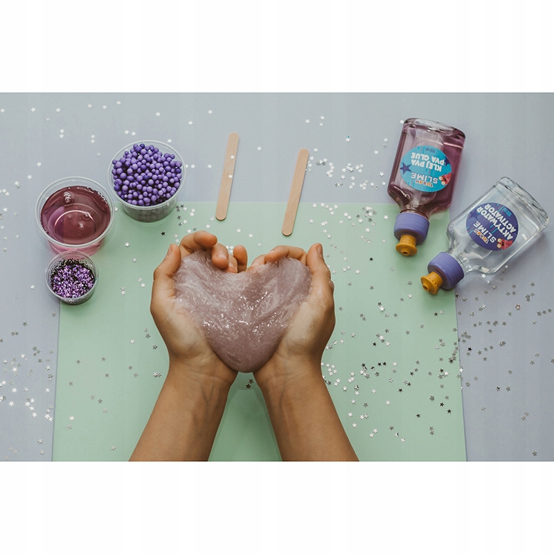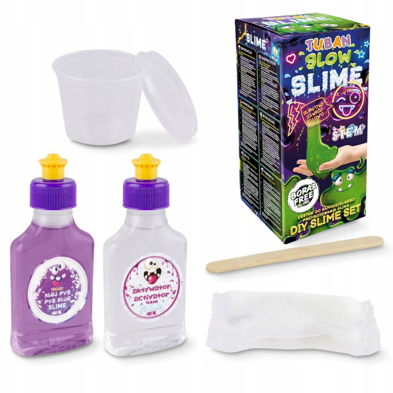 Завдяки відповідним інгредієнтам у наборі діти готують свою сяючу слизу, , вивчаючи різні хімічні процеси та розвивають ручні навички. подібного.