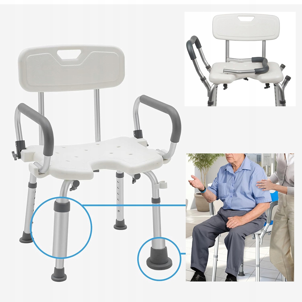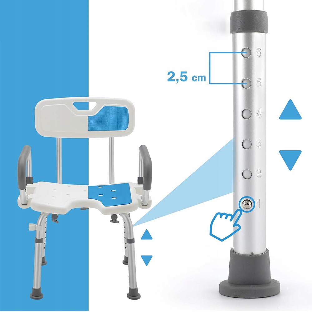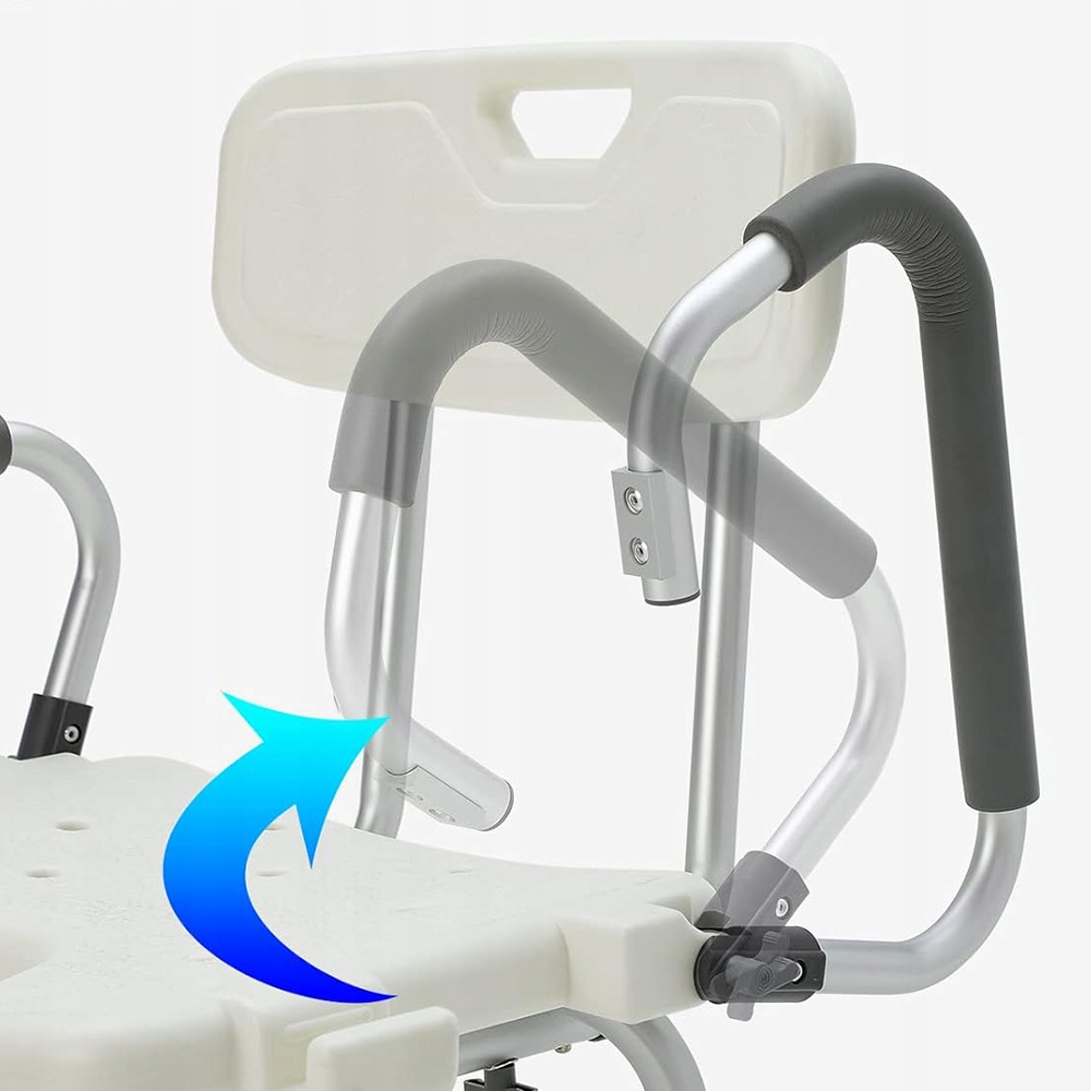 - Це крісло для душу виготовлено з легкого, але міцного алюмінієвого сплаву, який забезпечує комфорт і можливість розібрати.