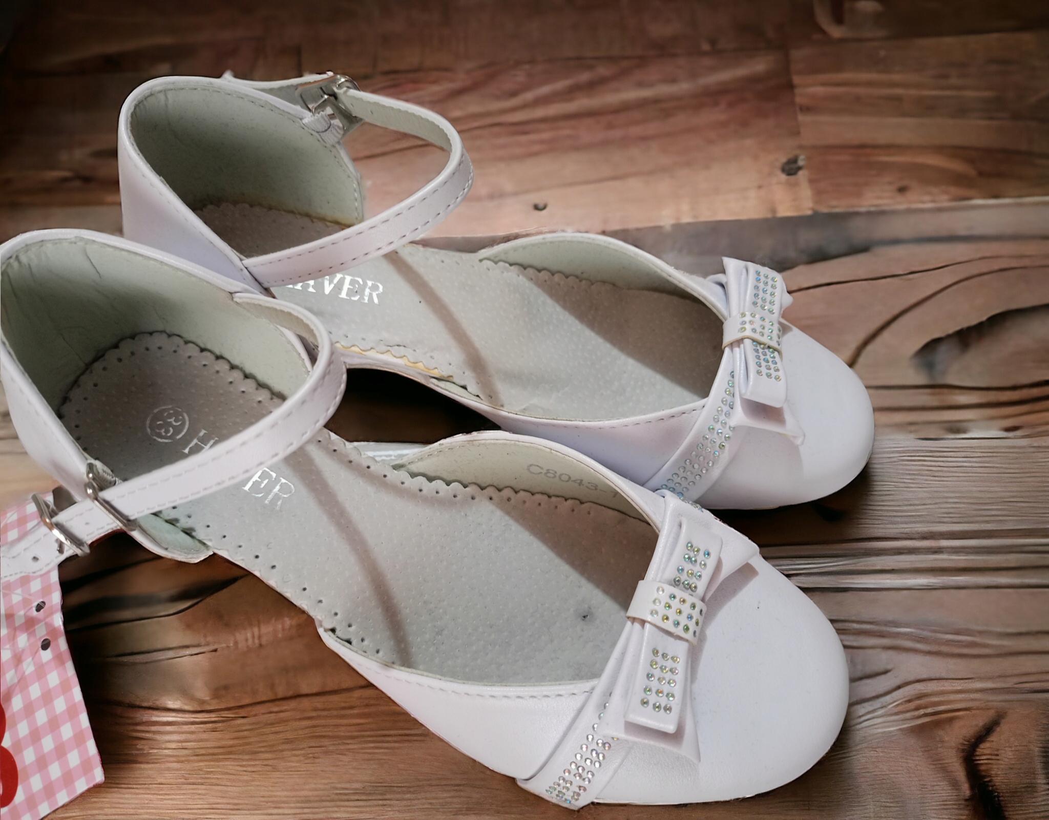 Туфельки білі з бантом, підбори балерини, 34 розмір