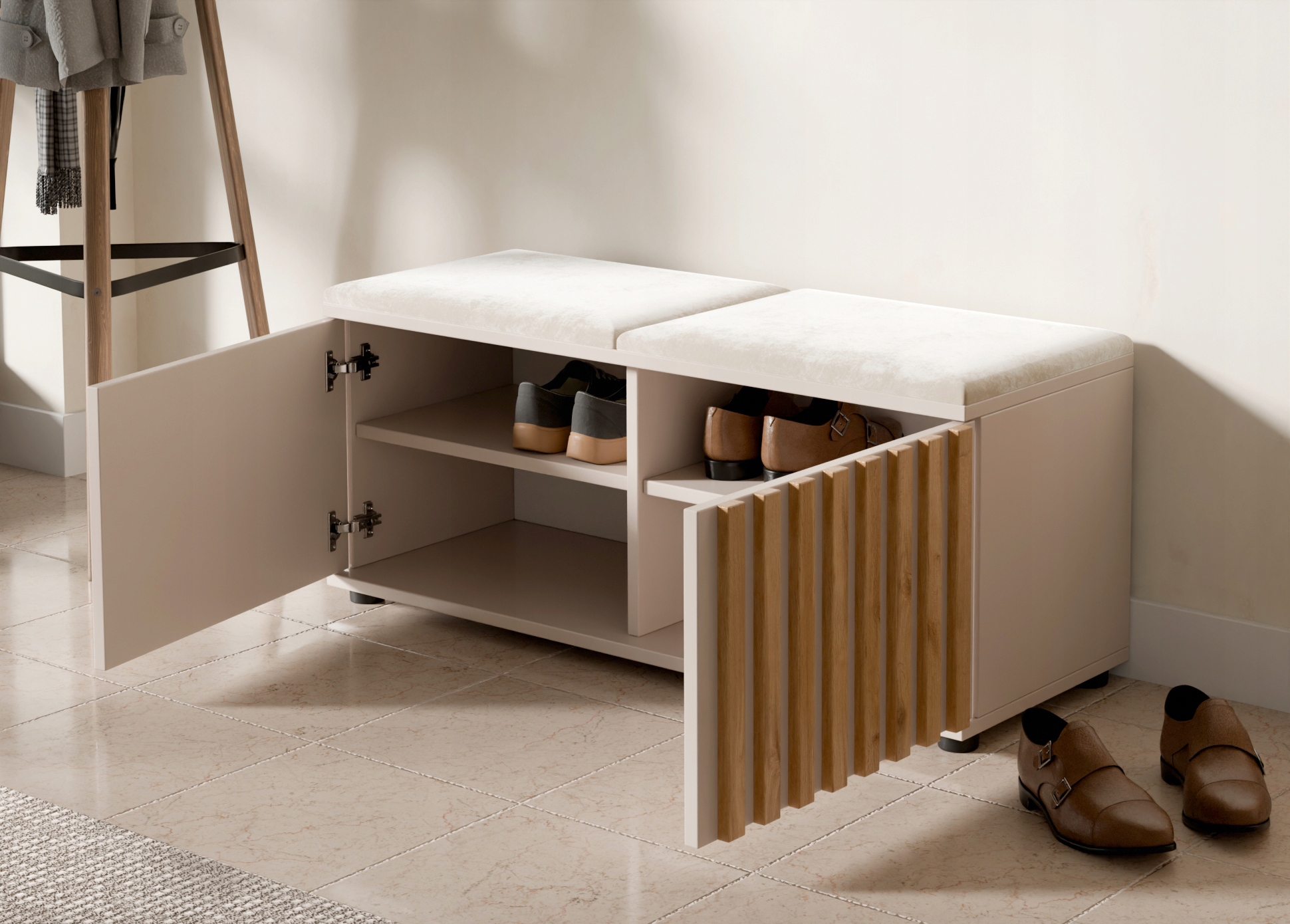 Внесіть у свій інтер’єр стиль, порядок і комфорт завдяки цій унікальній шафі для взуття з м’яким сидінням.