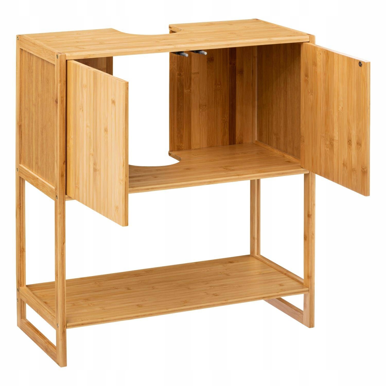 - Функціональність поєднується зі стилем: ця бамбукова тумба під умивальник одночасно стильна та практична, що робить її ідеальною для будь-якої ванної кімнати.