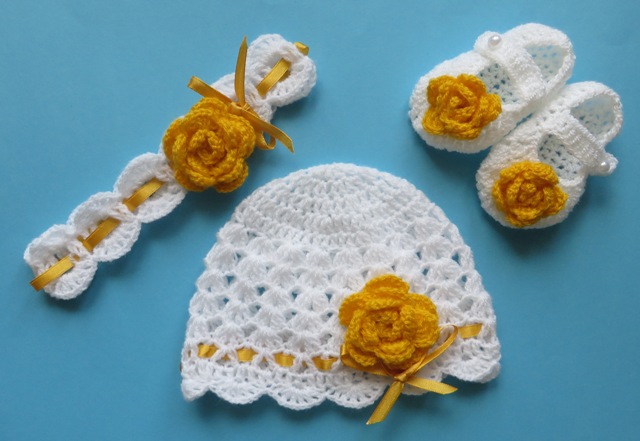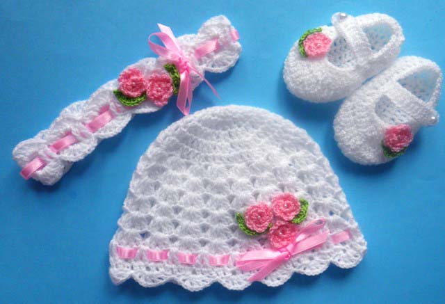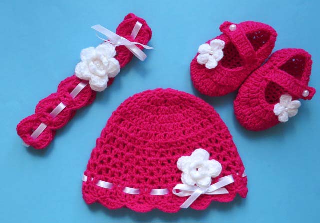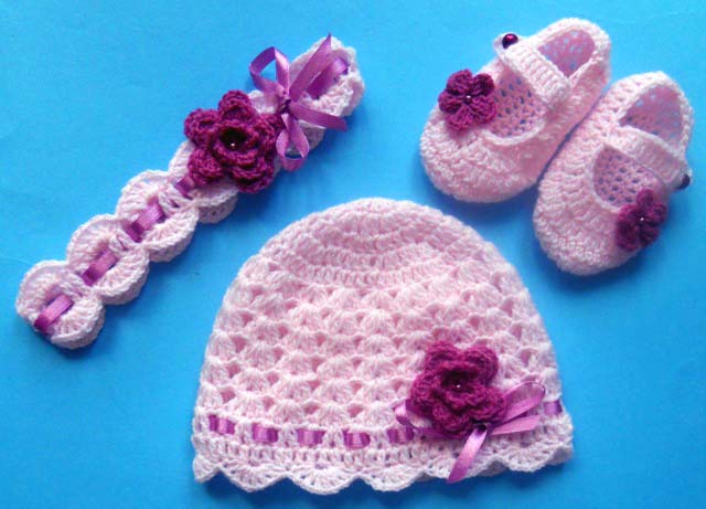 в'язані гачком шапочки, взуття, пов'язки, комплекти з 2 предметів. та 3-компонентні