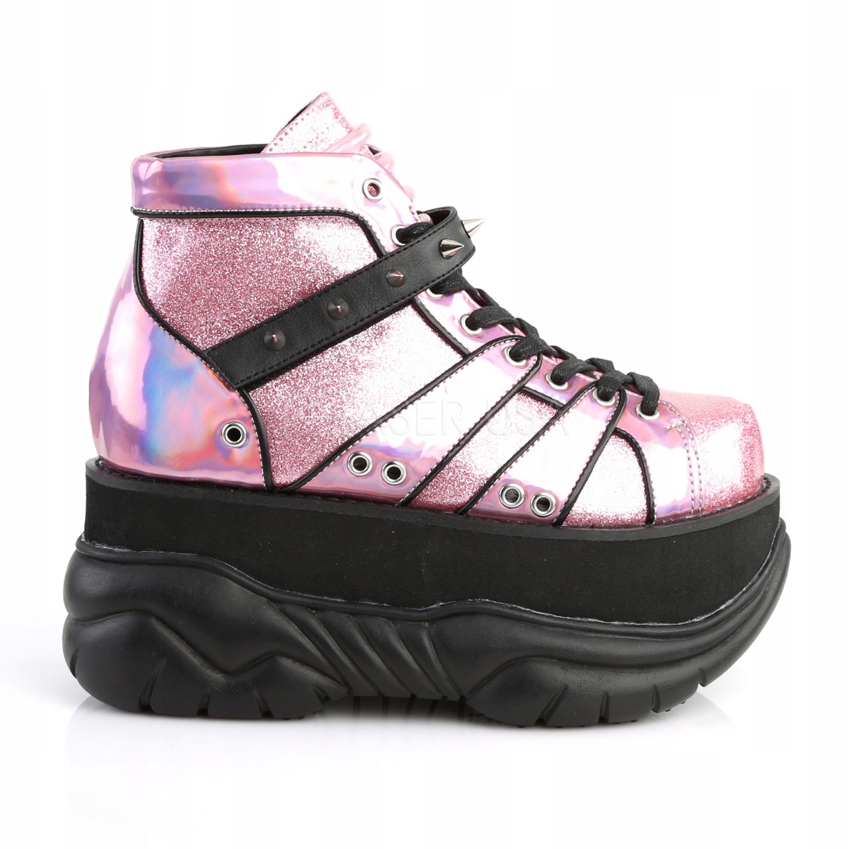 Оригінальні демонічні ботильйони на шнурівці з ремінцем на липучці та шпильками. На мові є спеціальна смужка, яка змінює колір під впливом УФ-випромінювання. Крім того, світловідбиваючий колір частин взуття також сприяє його чудовому вигляду. Взуття ідеально підходить для жінок і чоловіків. Платформа висотою 7,6 см створює унікальний стиль альтернативних людей.